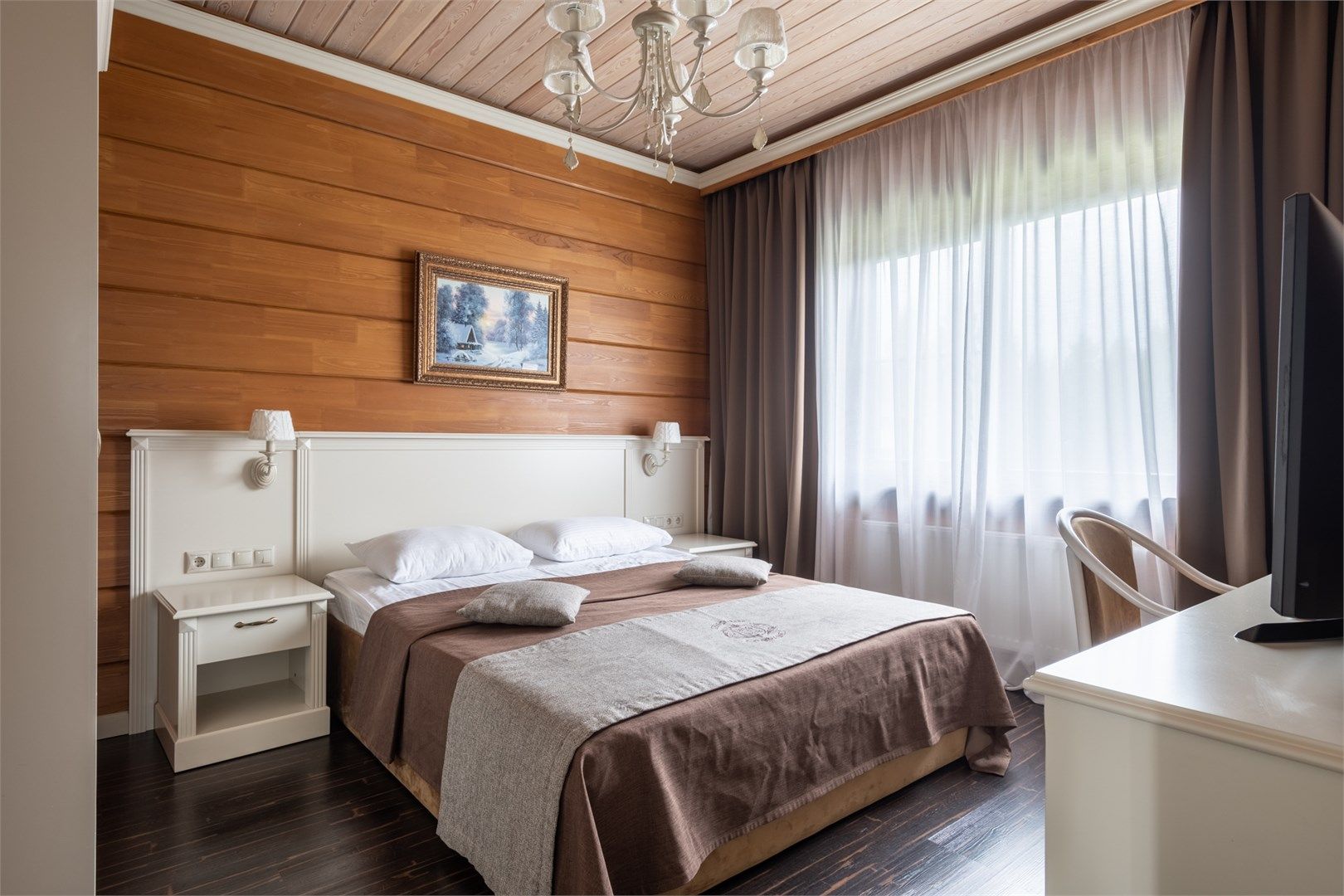 Отель расположен в экологически чистом районе Московской области. Индивидуальные коттеджи разной площади для маленькой или большой компании оснащены всем необходимым для отдыха. К услугам гостей - ресторан, где гостей всегда ждут свежеприготовленные блюда от шеф-повара; СПА комплекс с двумя бассейнами, русской баней, хаммам; Бали-салон со всевозможными программами уходов по телу и лицу, волшебным балийским массажем для отдыха и восстановления сил. К услугам самых важный гостей - детей – анимация в семейном развлекательном центре, батутная арена, зал игровых автоматов, масса площадок - спортивных и просто для игр, парк на острове (альпаки, павлины, белки, лебеди). Сейчас на территории два озера, одно из которых с пляжем с белоснежным песком. Летом тут отличная рыбалка, катамараны, зимой - зеркально-ровный каток, горка, ровная лыжня. Гостям предлагается прокат инвентаря и техники. Для любителей активности - воркаут, теннисный корт, хоккейная площадка, настольный теннис, бильярд, дартс.