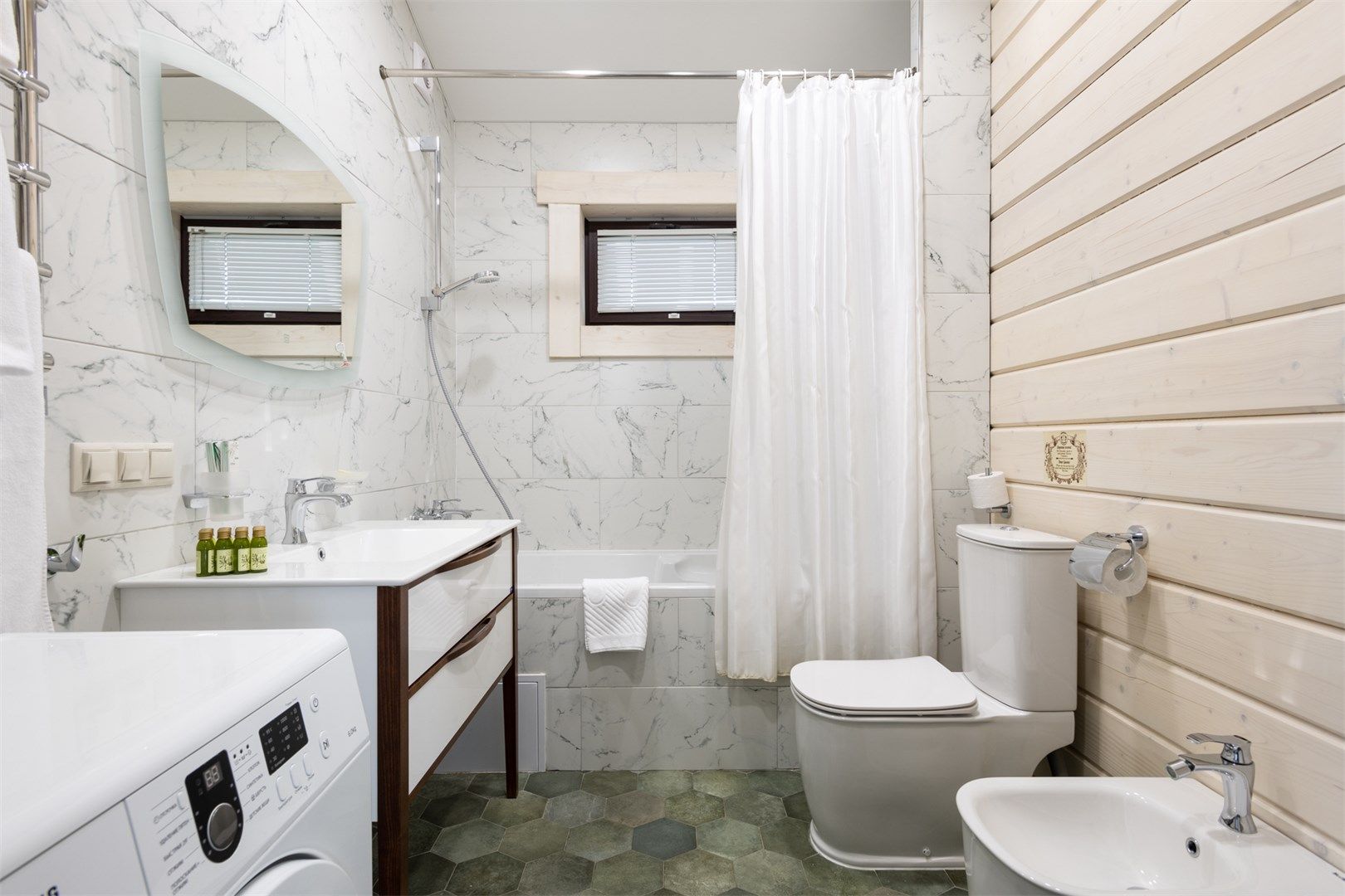 Коттедж рассчитан для комфортного размещения 4-х человек. Двое гостей могут разместиться на раскладном диване в гостиной, имеется возможн...