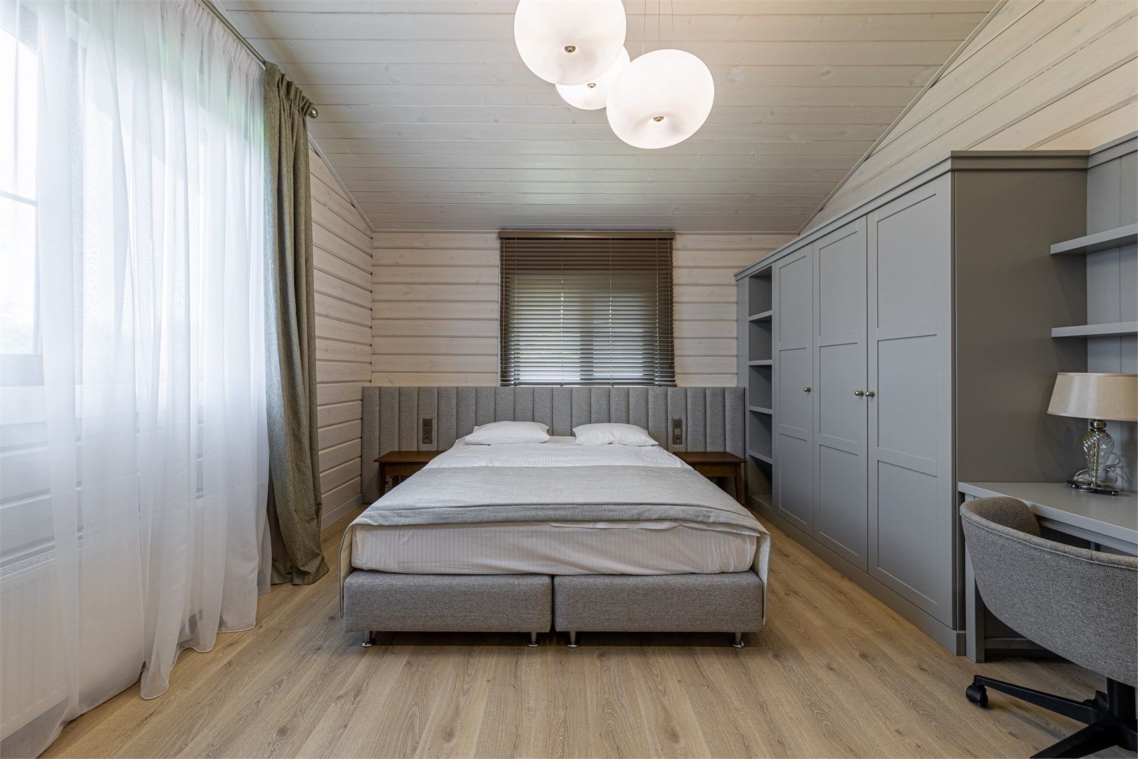 Коттедж площадью 215 кв.м (5 спален) с кондиционером, кухня-столовая, гостиная, холл, 2 санузла, балкон, терраса с садовой мебелью. Гости могут разместиться на раскладных диванах и кресле в спальне и гостиной (просим обратить внимание на стоимость при размещении гостей на диванах и дополнительных местах).