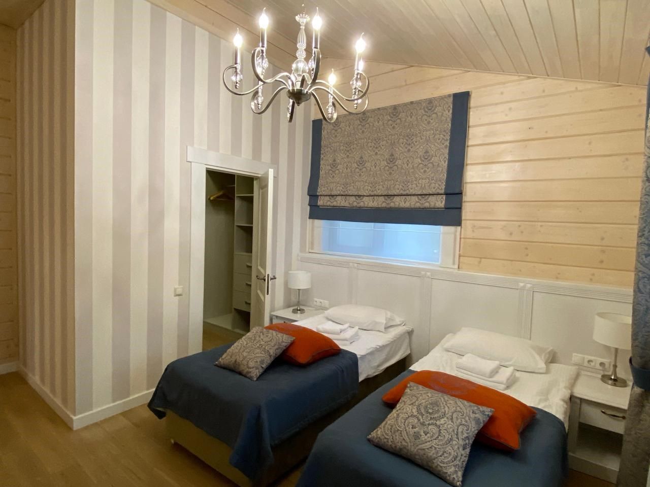 Коттедж площадью 204 кв.м (4 спальни) с кондиционером, кухня-столовая, гостиная, холл, 2 санузла, балкон, терраса с садовой мебелью, гардеробная. Двое гостей могут разместиться на раскладном диване в гостиной, имеется возможность установки дополнительного места (просим обратить внимание на стоимость при размещении гостей на диване и дополнительных местах).