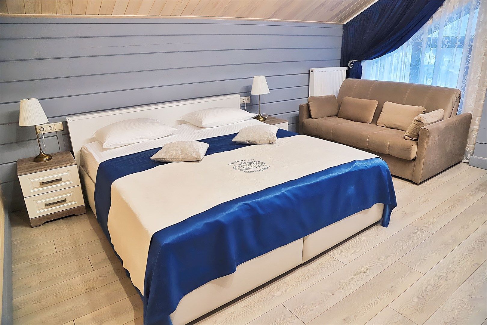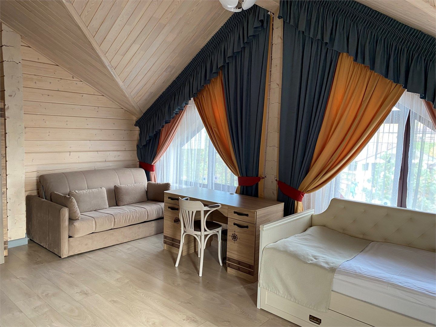 Однокомнатный номер 40 кв.м с отдельным входом с улицы (в коттедже 4 номера). Предусмотрена возможность бронирования номеров данной категории в одном коттедже (при наличии по запросу). Дополнительный гость может разместиться на еврораскладушке (просим обратить внимание на стоимость при размещении на дополнительном месте).