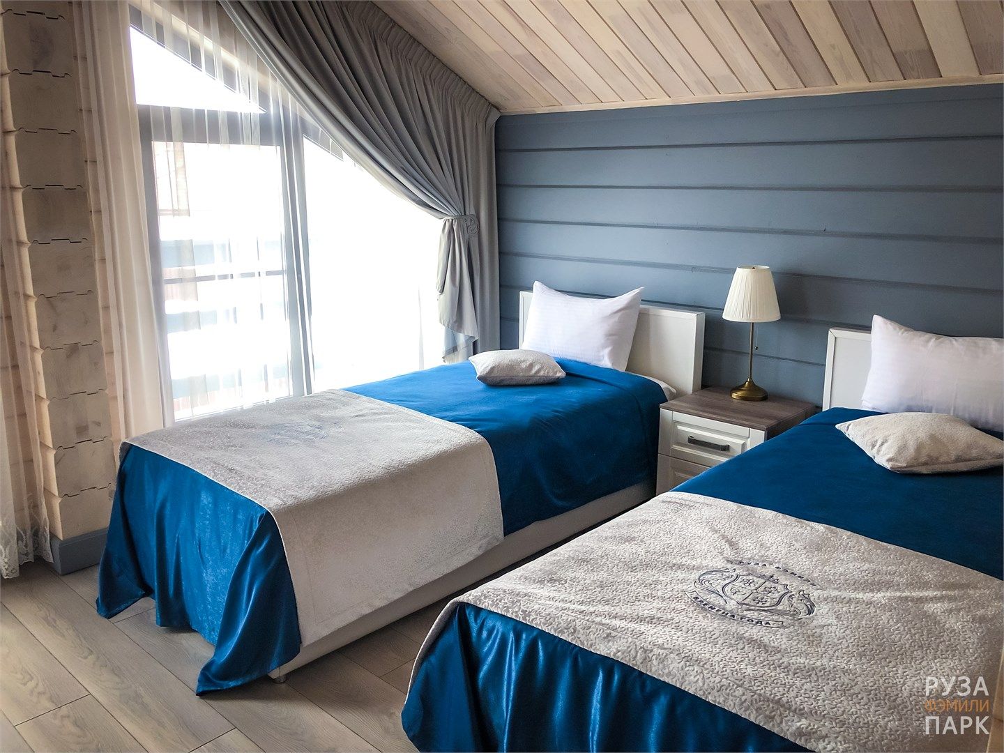 5 спален: 2 двуспальные кровати; 6 односпальных или 3 двуспальные кровати