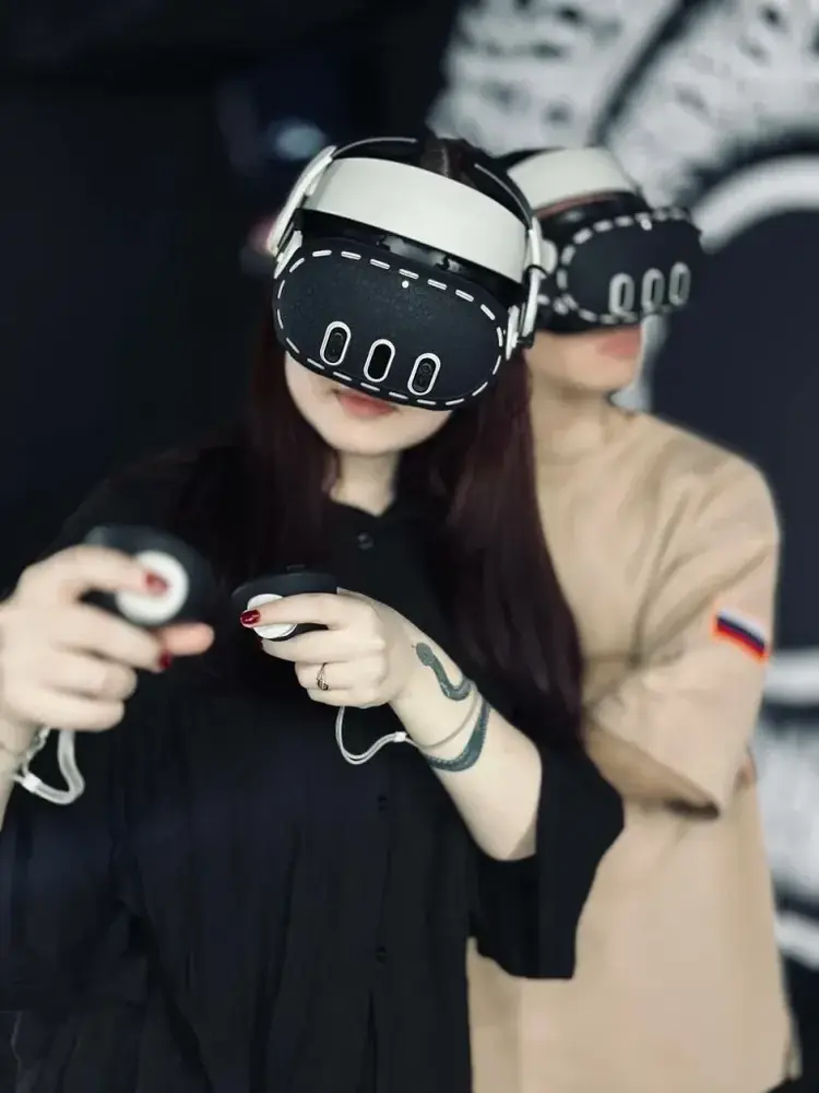 Окунитесь в мир виртуальной реальности в одиночку или с друзьями! Все ваши действия в реальном мире будут в виртуальном благодаря самым новым шлемам Oculus Quest 3.