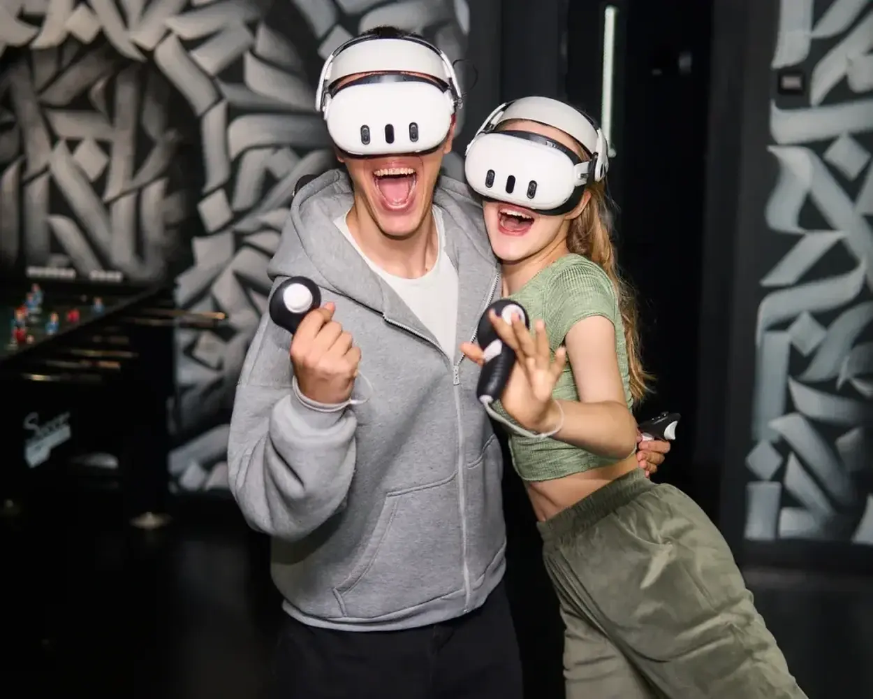 Погрузитесь в захватывающий мир виртуальной реальности с Oculus Quest 3 или испытайте мощь PlayStation 5 в VIP‑зале! Вас ждут 70 VR‑игр и популярные хиты на огромном экране с объёмным звуком - незабываемые впечатления гарантированы для вас и друзей за 60 минут яркого приключения.