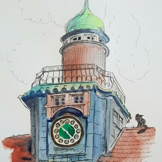 Продолжаем знакомство со скетчингом рисуя трамвайчик.