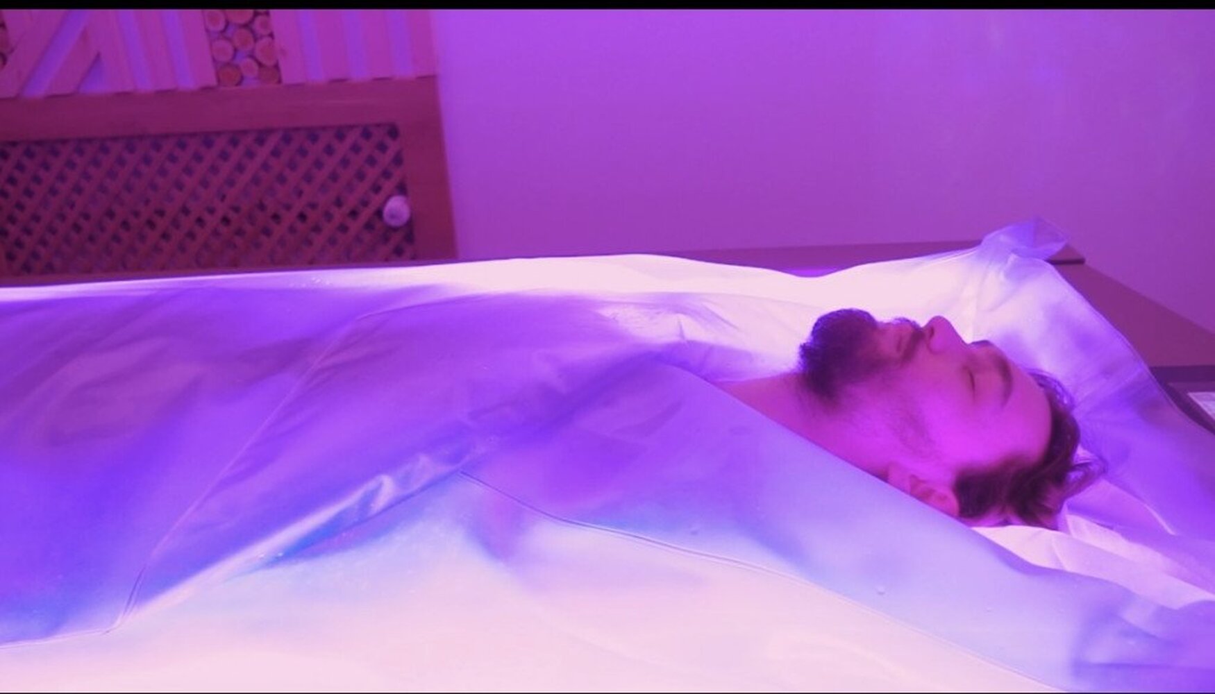 Имитируется состояние невесомости, без контакта с водой. Безмятежность и спокойствие достигаются дополнением в виде аромотерапии, музыкального сопровождения, воздействия гидромассажа на определенные точки, а сверху специальное одеяло наполняется водой и бережно укутывая вас, расслабляет мышцы.
