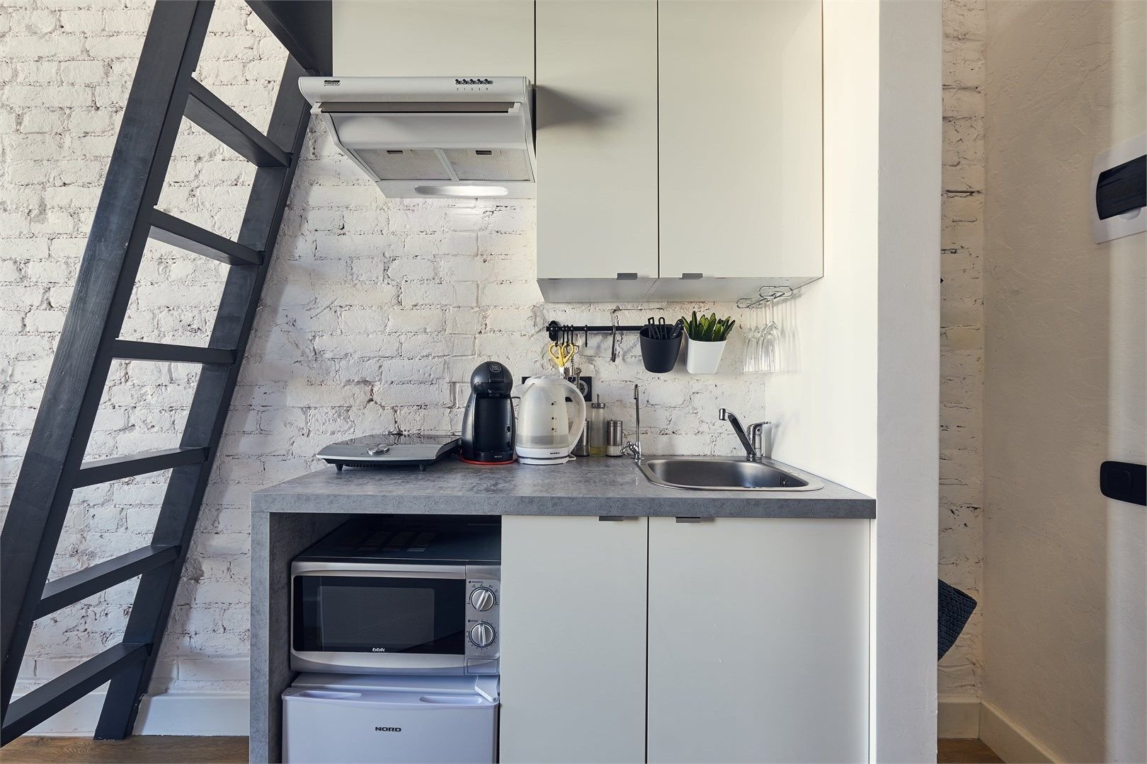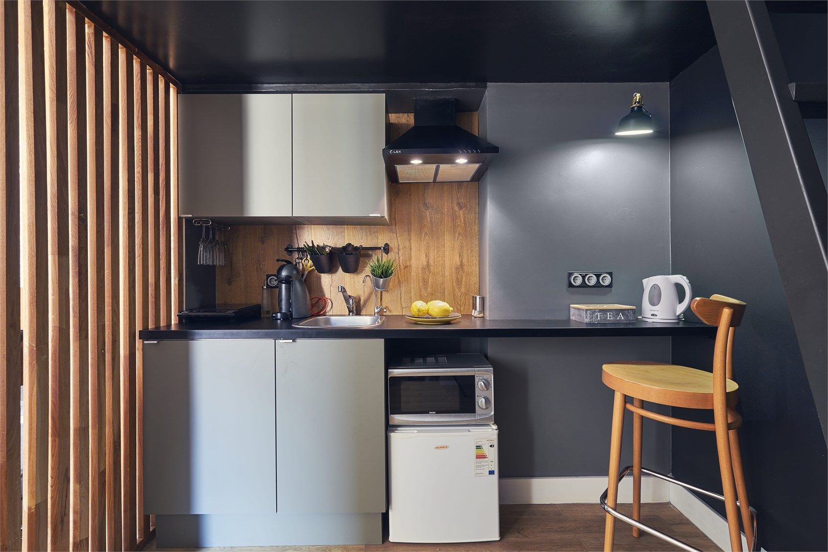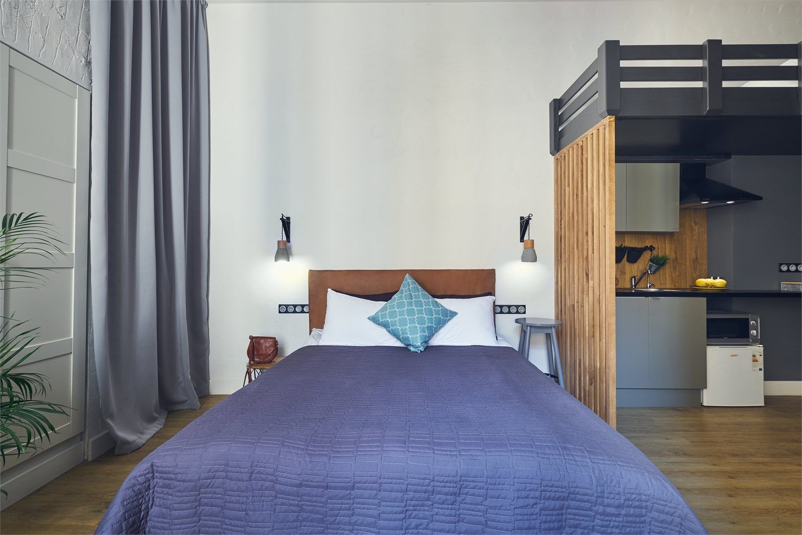 Ищете номер, где можно разместиться всей семьей или небольшой компанией? Этот улучшенный номер-студио с видом во двор – идеальный выбор! Просторный и светлый, он станет вашим личным убежищем, где каждый почувствует себя как дома. Двуспальная кровать и уютная односпальная кровать на втором уровне – это не просто спальные места, это личное пространство для каждого гостя. Мини-кухня позволит вам при...