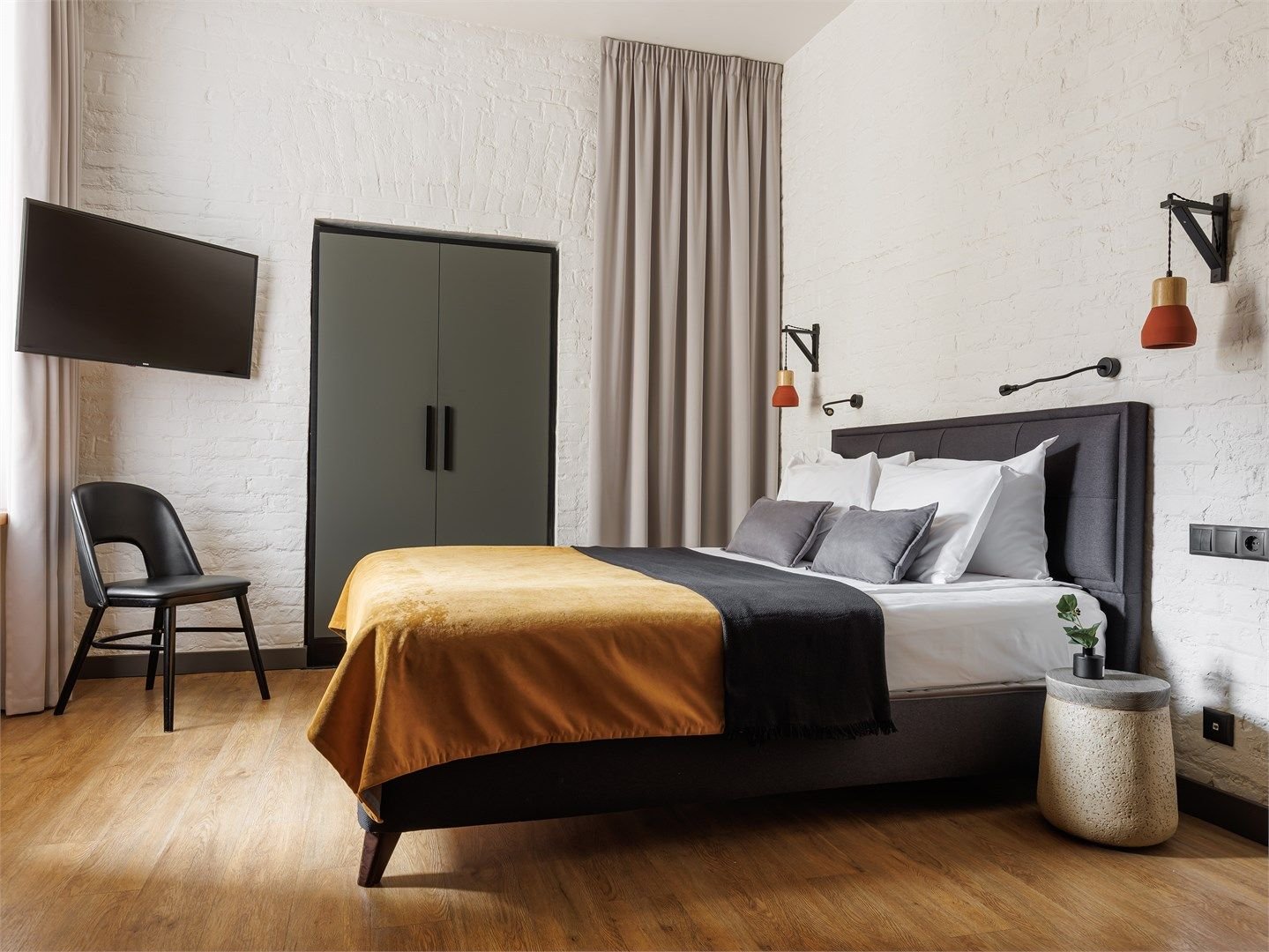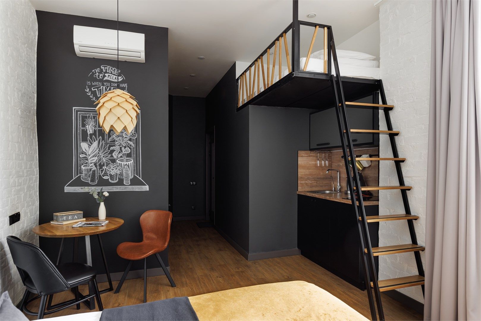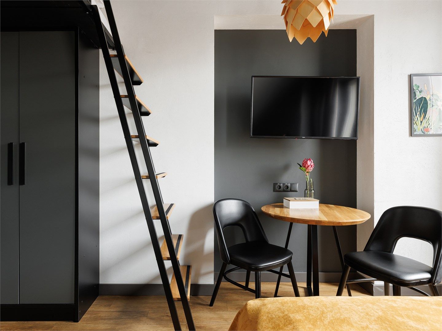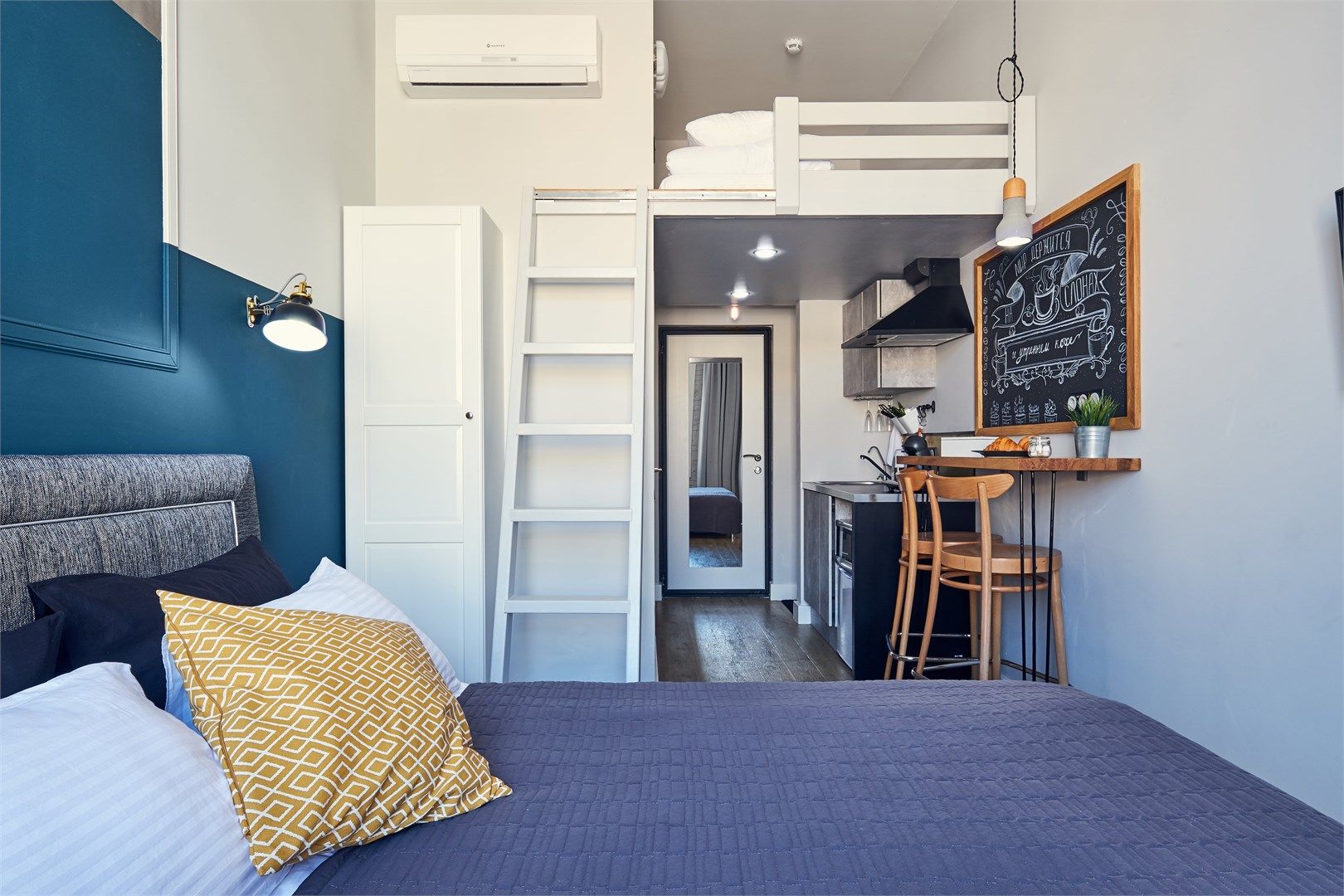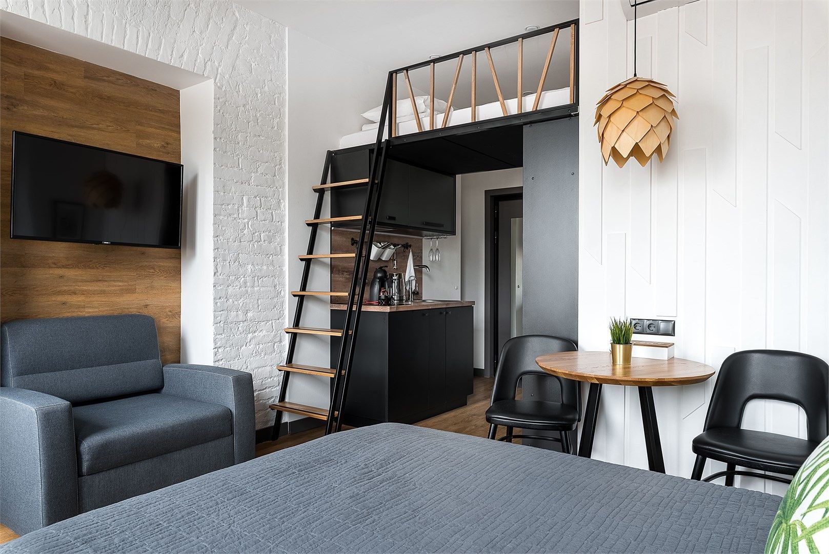 Семейный отдых с комфортом и стилем. Забудьте о тесных гостиничных номерах! В наших апартаментах "Делюкс" площадью от 21 до 25 квадратных метров найдется место для всей семьи. Продуманное пространство, удобная мебель и стильный интерьер создают атмосферу уюта и комфорта. Просторная двуспальная кровать и уютная односпальная кровать на втором уровне – это не просто спальные места, это личное простр...