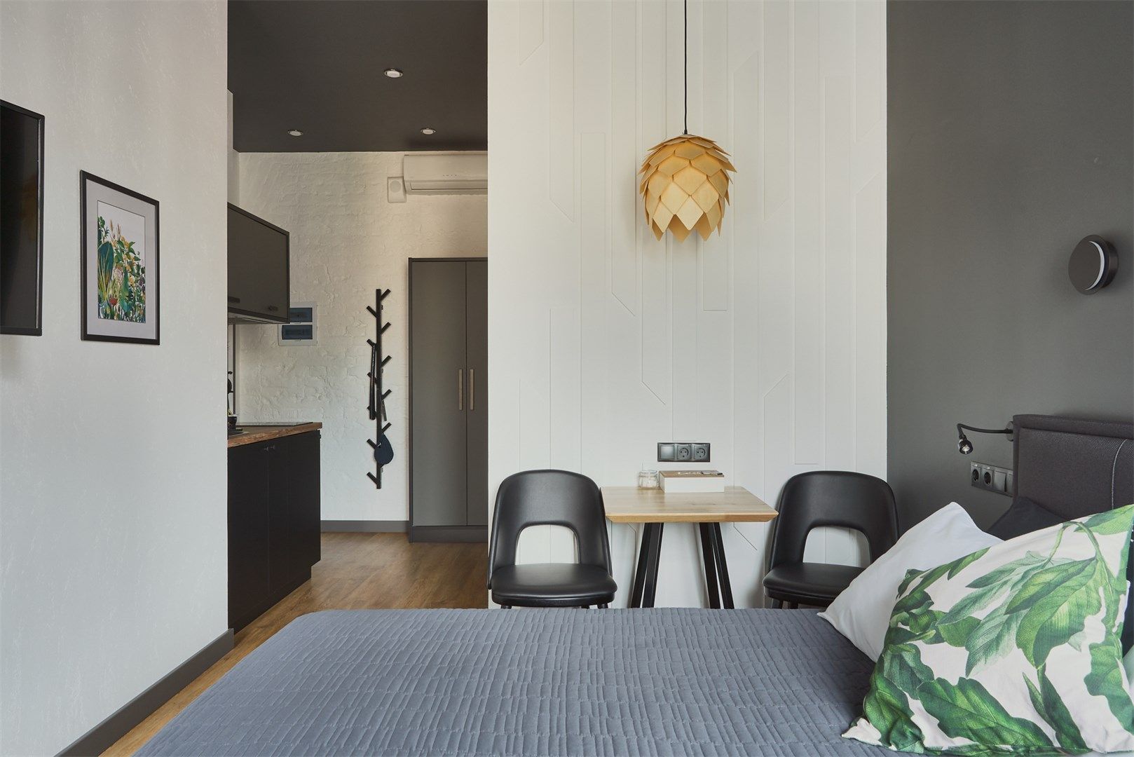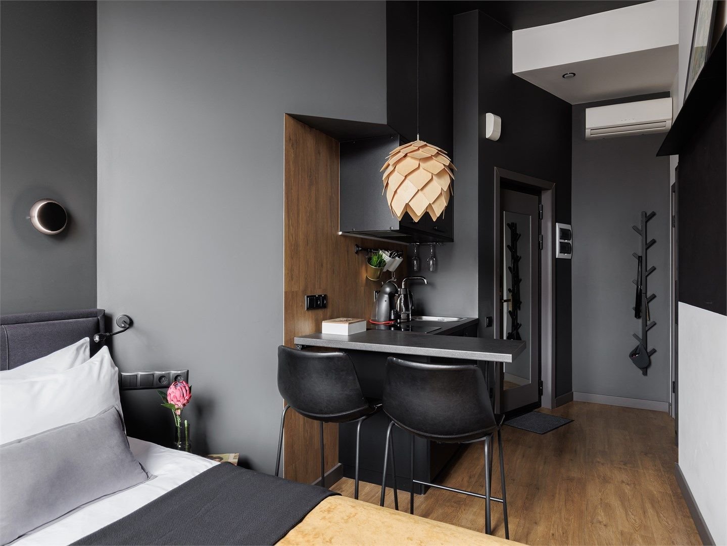 Мечтаете провести романтический отдых вдвоем? Номер-студио "Делюкс" с кроватью King-size – отличный вариант! Здесь вы по-настоящему сможете расслабиться и насладиться обществом друг друга. Огромная кровать и стильный интерьер, умело дополненные великолепным видом на город, создают атмосферу уюта и роскоши. Мини-кухня предоставит возможность приготовить романтический ужин, добавляя особый шарм ваш...