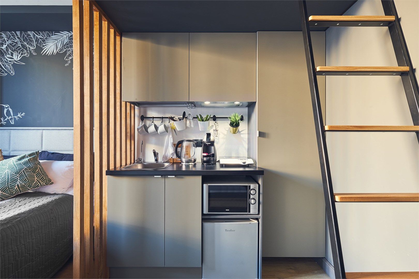 Ищете номер, где можно разместиться всей семьей или небольшой компанией? Этот улучшенный номер-студио с видом на город – идеальный выбор! Просторный и светлый, он станет вашим личным убежищем, где каждый почувствует себя как дома. Двуспальная кровать и уютная односпальная кровать на втором уровне – это не просто спальные места, это личное пространство для каждого гостя. Мини-кухня позволит вам пр...