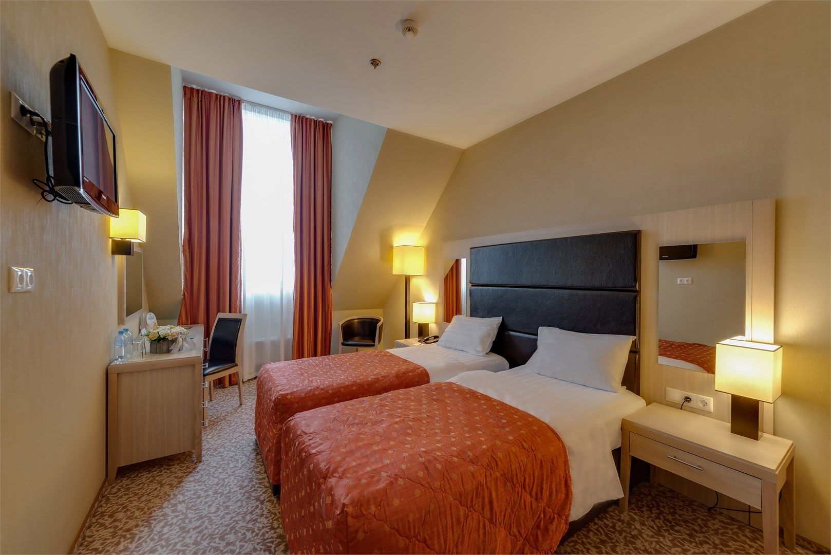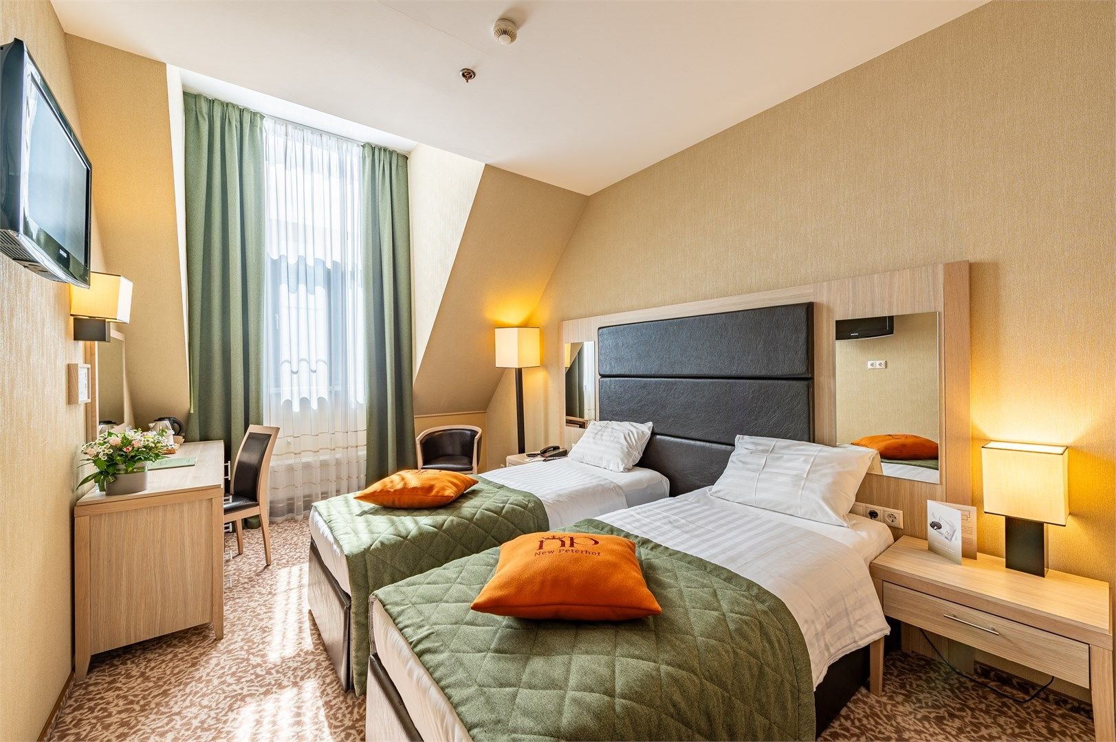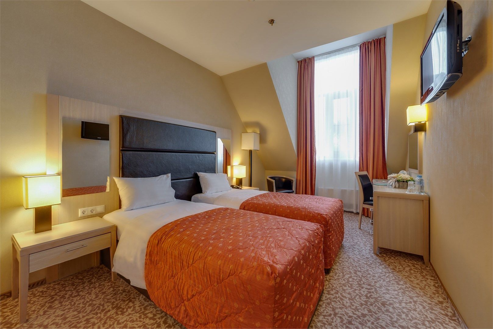 Номера данной категории оснащены двумя раздельными кроватями (90x200) и расположены на 2 этаже с видом на Собор Петра и Павла.