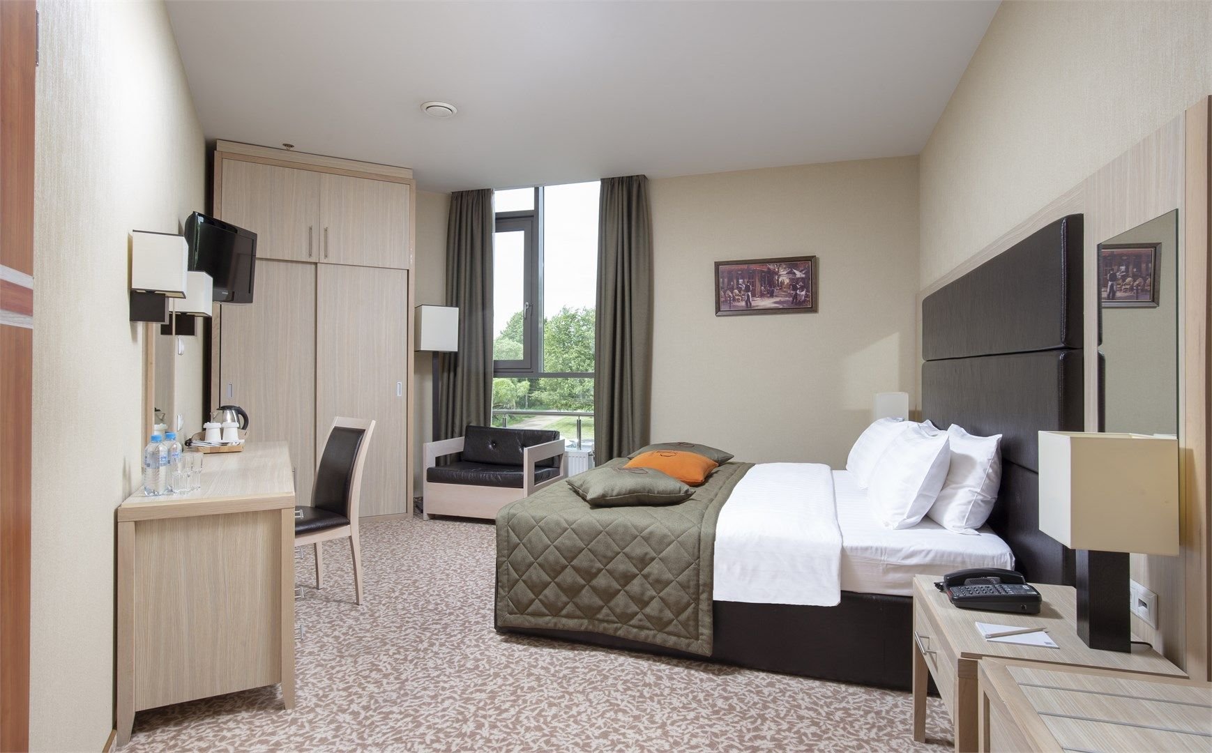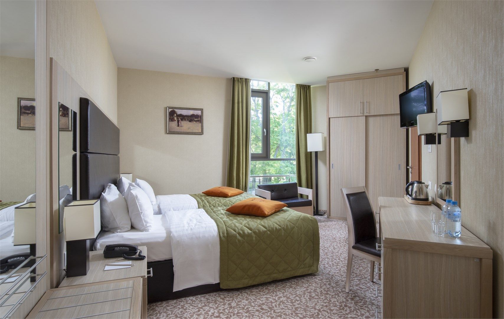 Номера данной категории с двумя раздельными кроватями (90x200) расположены на 2 этаже с видом на пруд. Номера оснащены открывающимся окном.