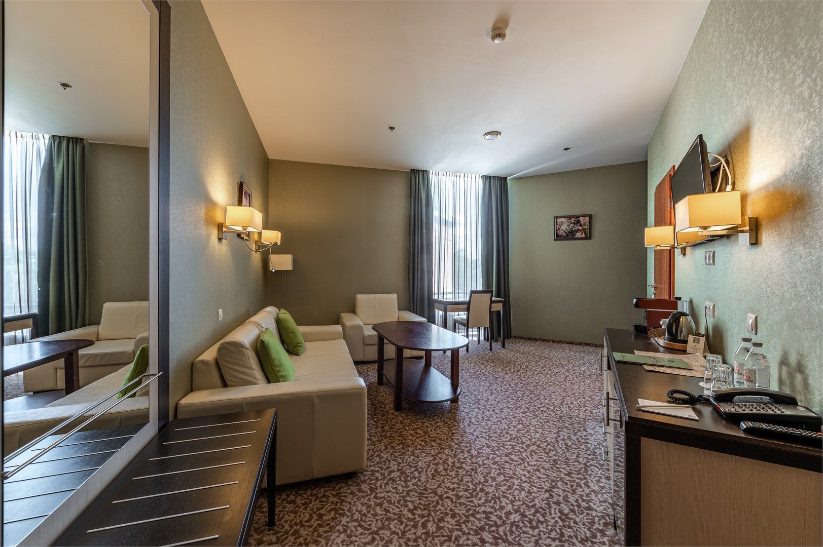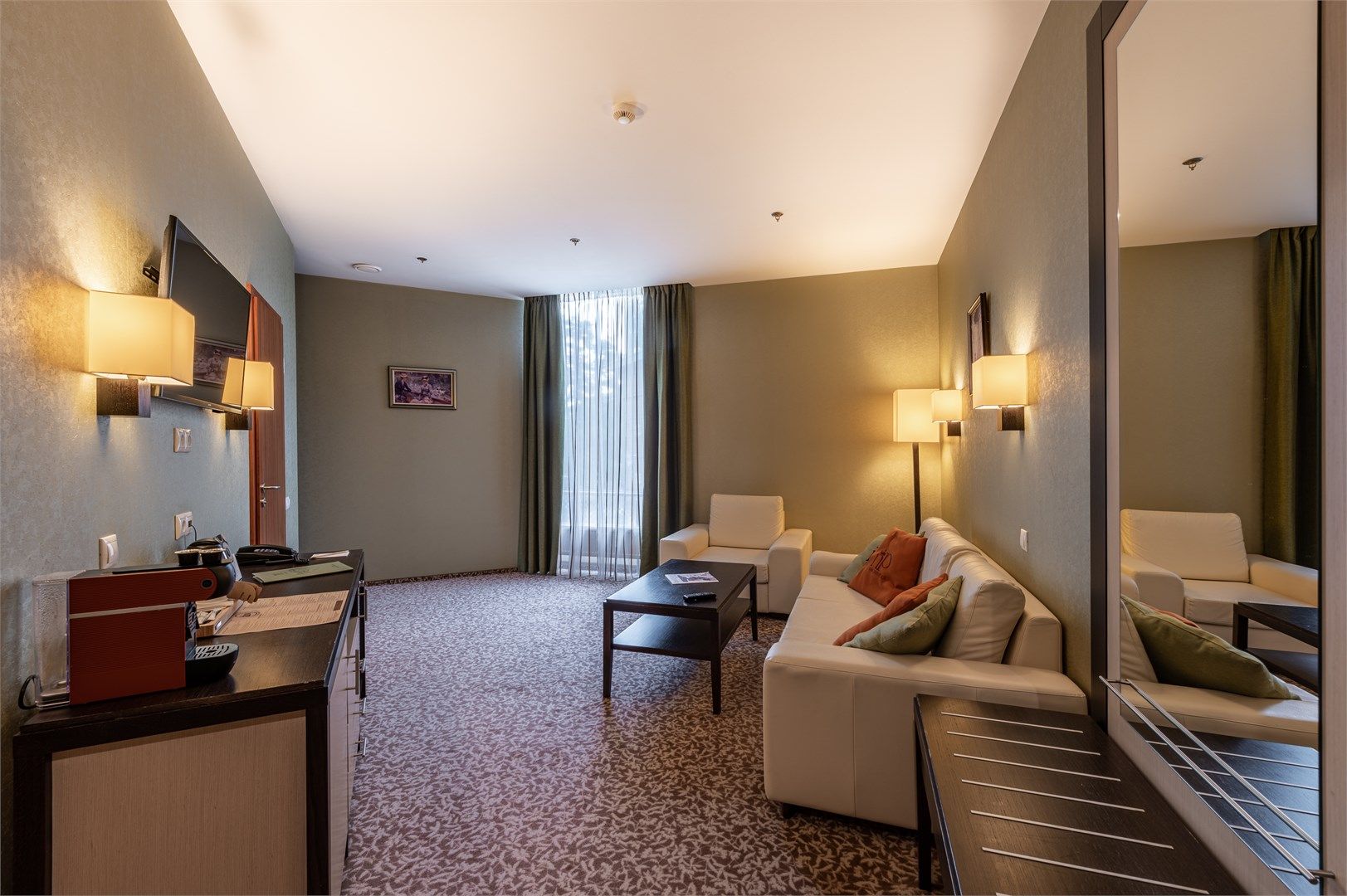 Двухкомнатный номер - гостиная и спальня отдельно.