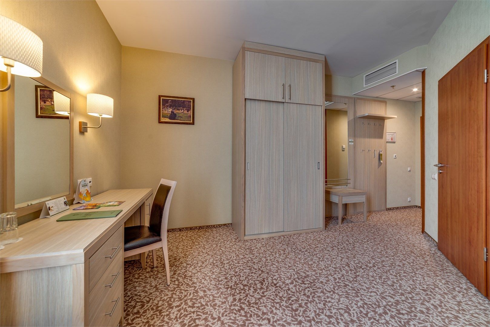Номер с двуспальной кроватью (160x200) расположен на 3 мансардном этаже и подходит для комфортного проживания одного или двух гостей. Гости, проживающие в номерах данной категории, могут посещать аква-центр без дополнительной оплаты ежедневно с 07.30 до 11.00...