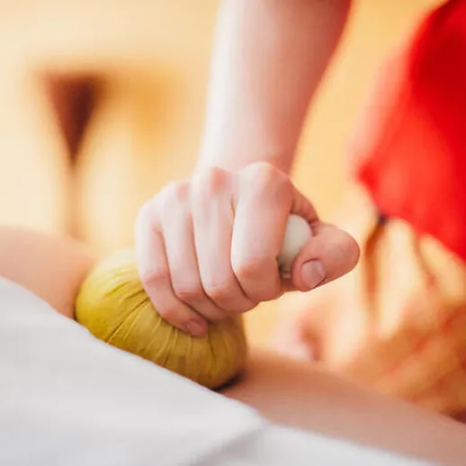 Массаж горячими травяными мешочками - активно воздействует на энергетические каналы и биоактивные точки.