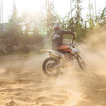 Увлекательная езда на внедорожном мотоцикле по трассам с естественными и искусственными препятствиями в виде крутых подъёмов, спусков, поворотов и трамплинов.
