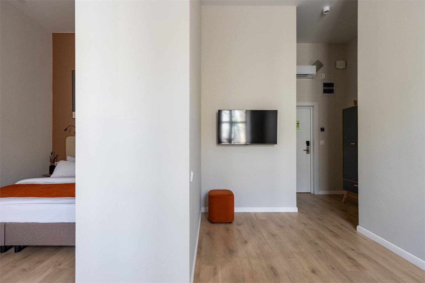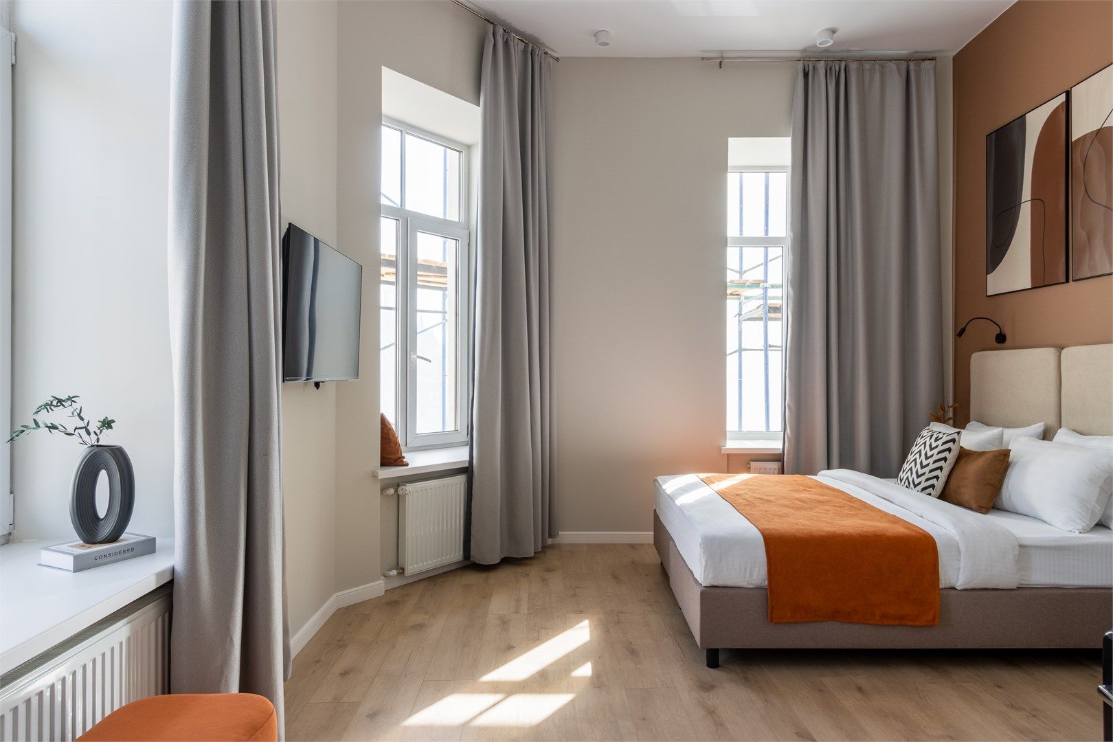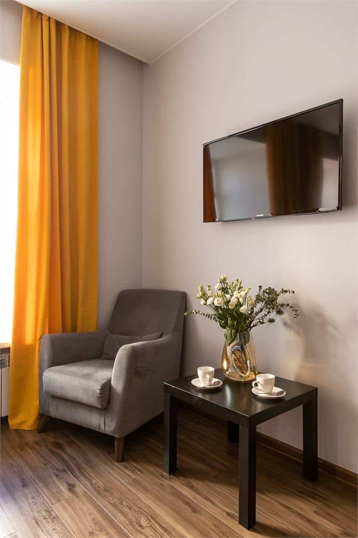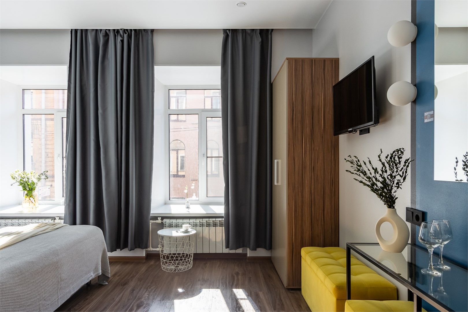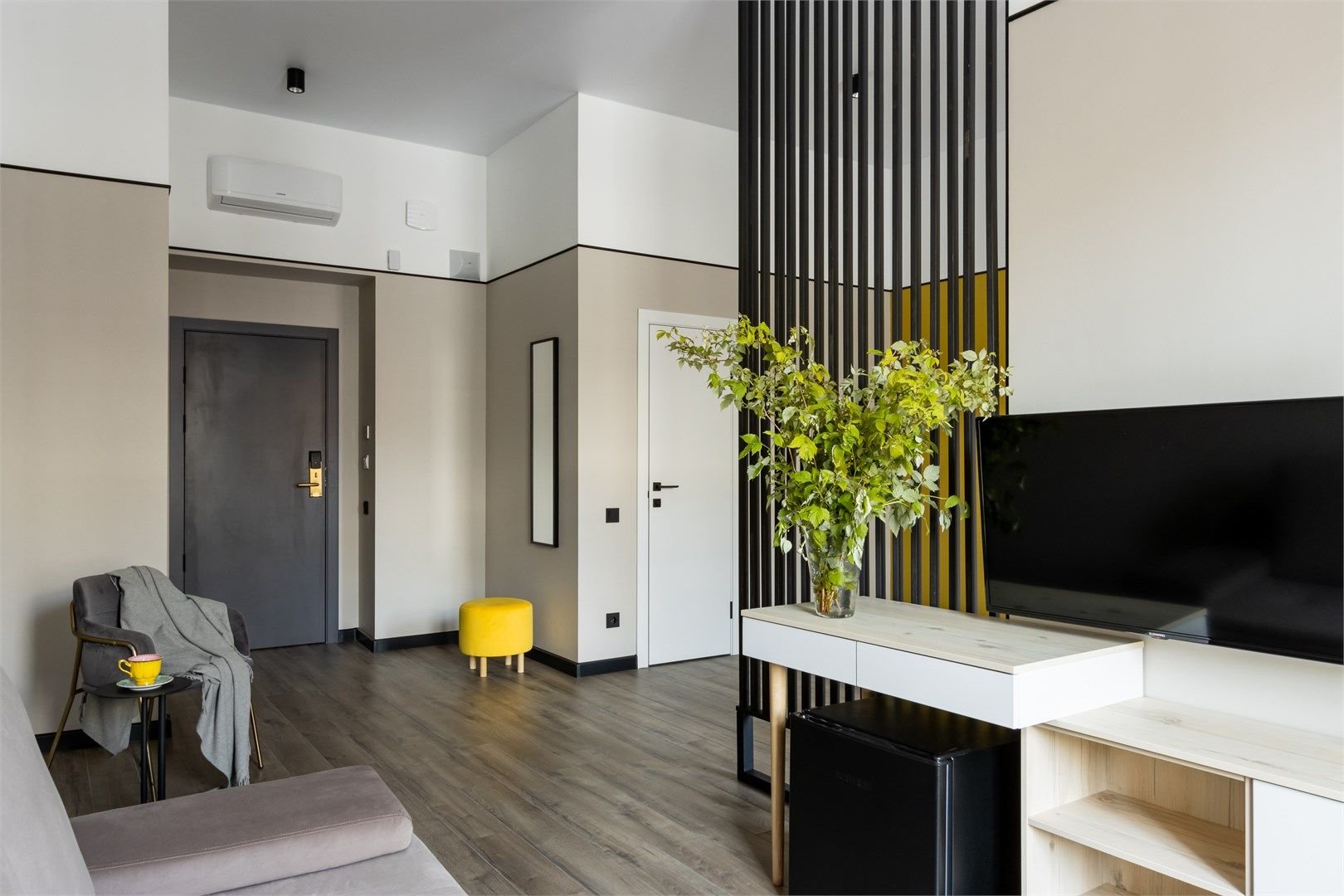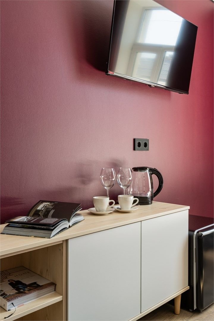 Звукоизолированный номер-студио с мини-кухней и кондиционером. В собственной ванной комнате: • Душ • Фен • Бесплатные туалетно-косметические принадлежности • Тапочки • Полотенца Вид: • Вид на город • Вид во внутренний дворик Удобства апартаментов: ​ • Мини-кухня • Холодильник • Плита • Микроволновая печь • Кухонные принадлежности • Кондиционер • Телефон • Отопление • Деревянный или паркетный пол •...