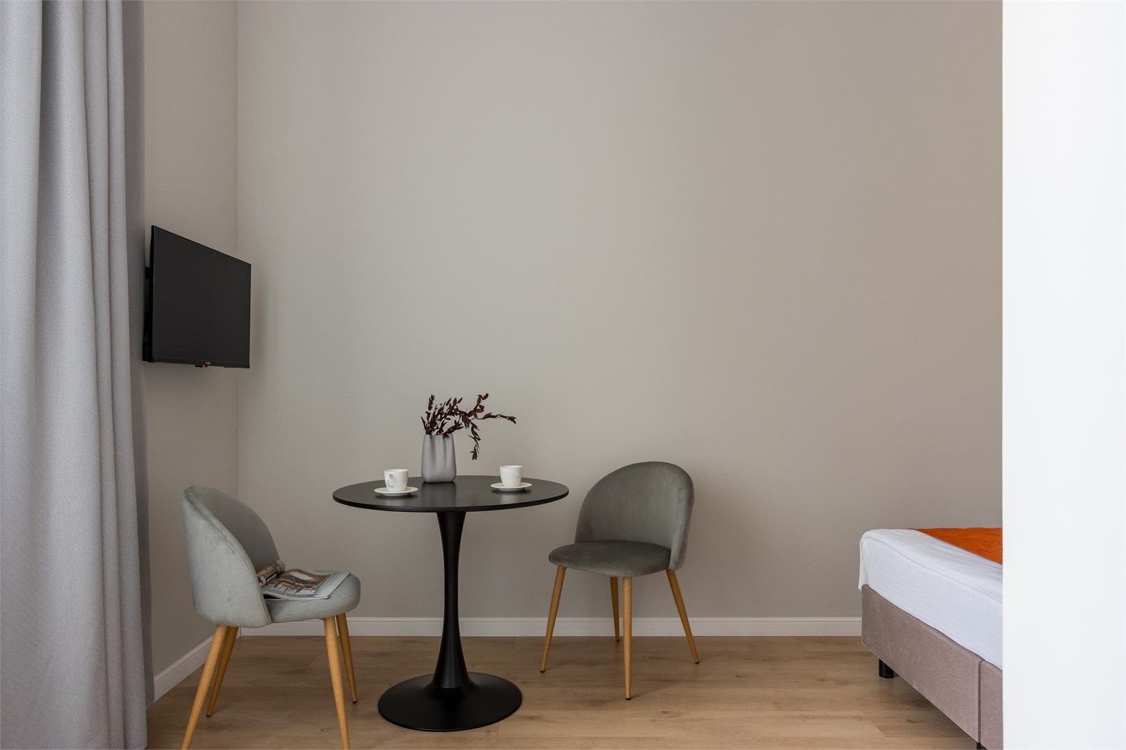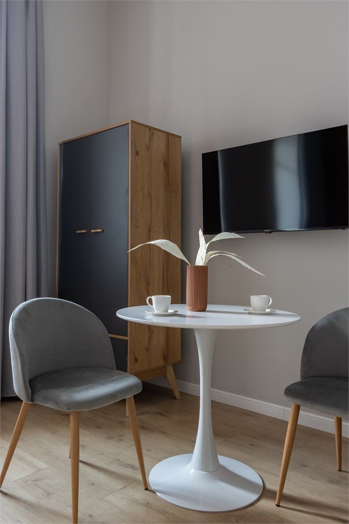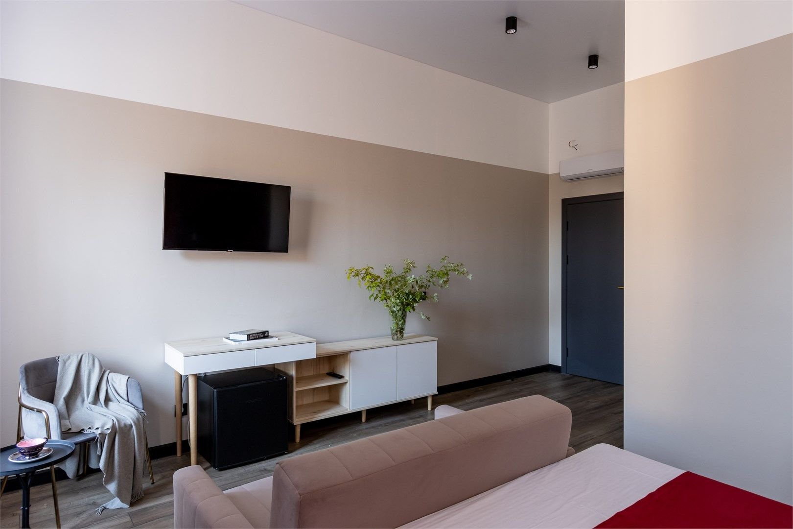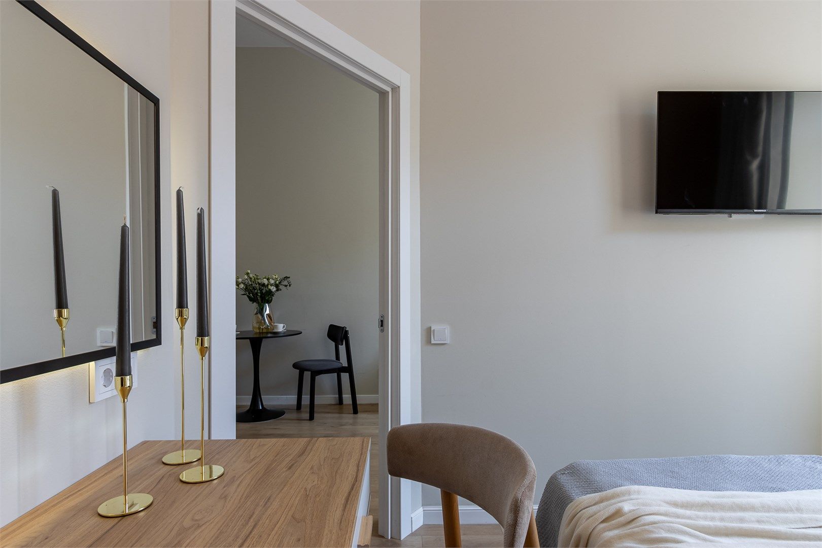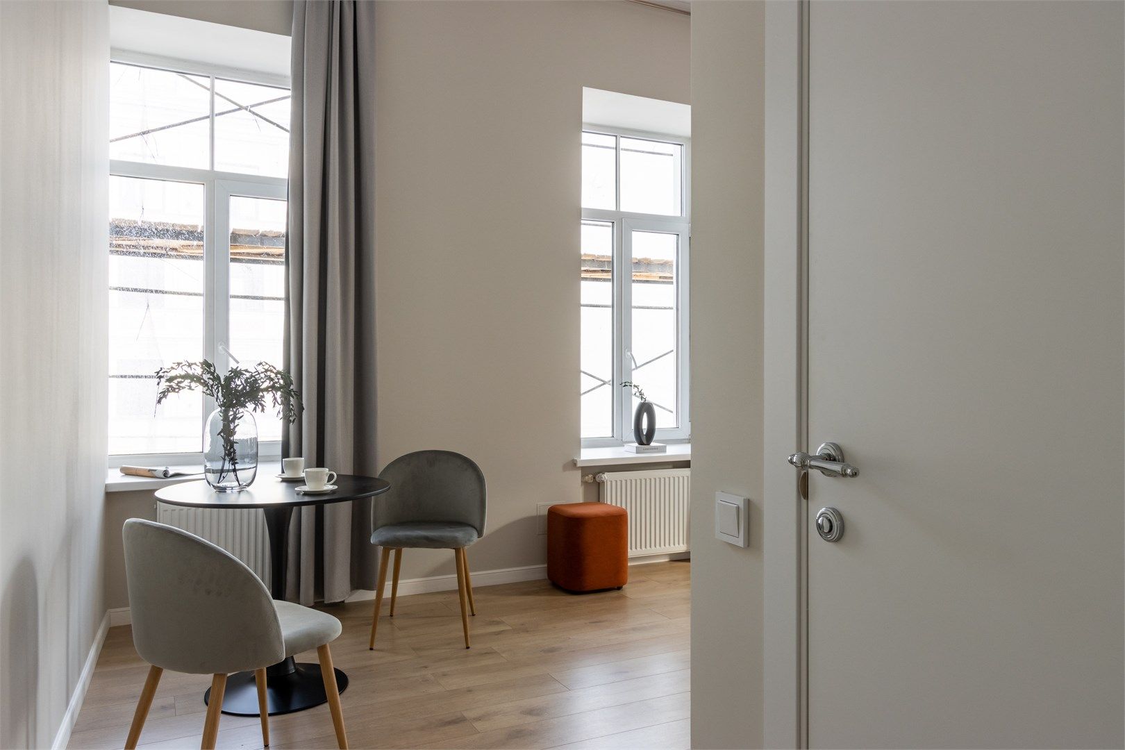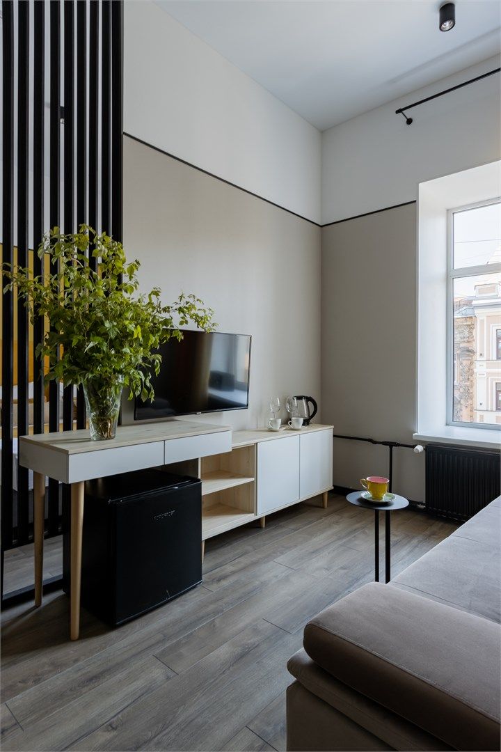 Звукоизолированный номер-студио с мини-кухней и кондиционером. В собственной ванной комнате: • Душ • Фен • Бесплатные туалетно-косметические принадлежности • Тапочки • Полотенца Вид: • Вид на город • Вид во внутренний дворик Удобства апартаментов: ​ • Мини-кухня • Холодильник • Плита • Микроволновая печь • Кухонные принадлежности • Кондиционер • Телефон • Отопление • Деревянный или паркетный пол •...