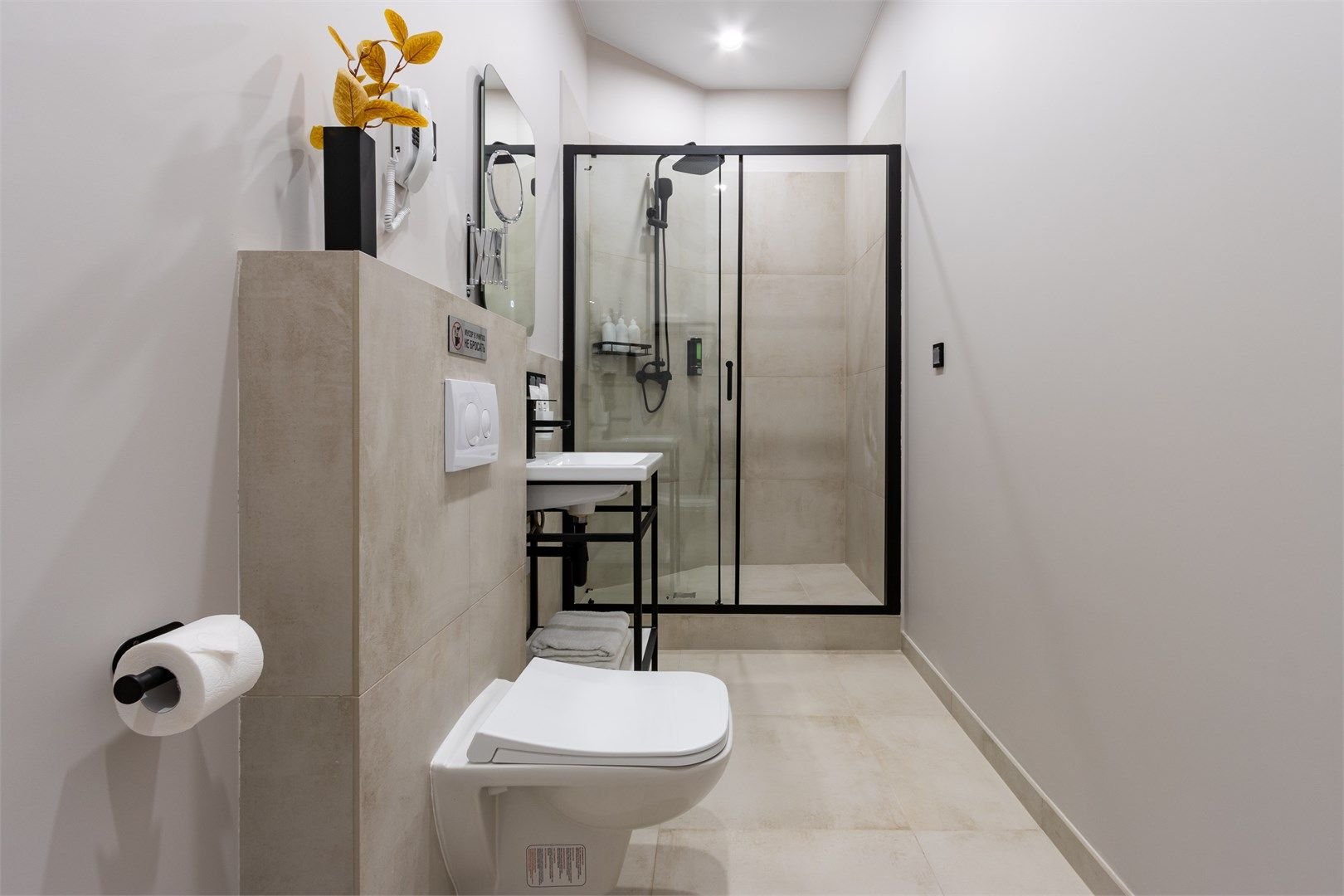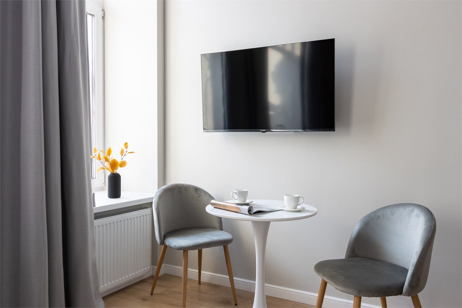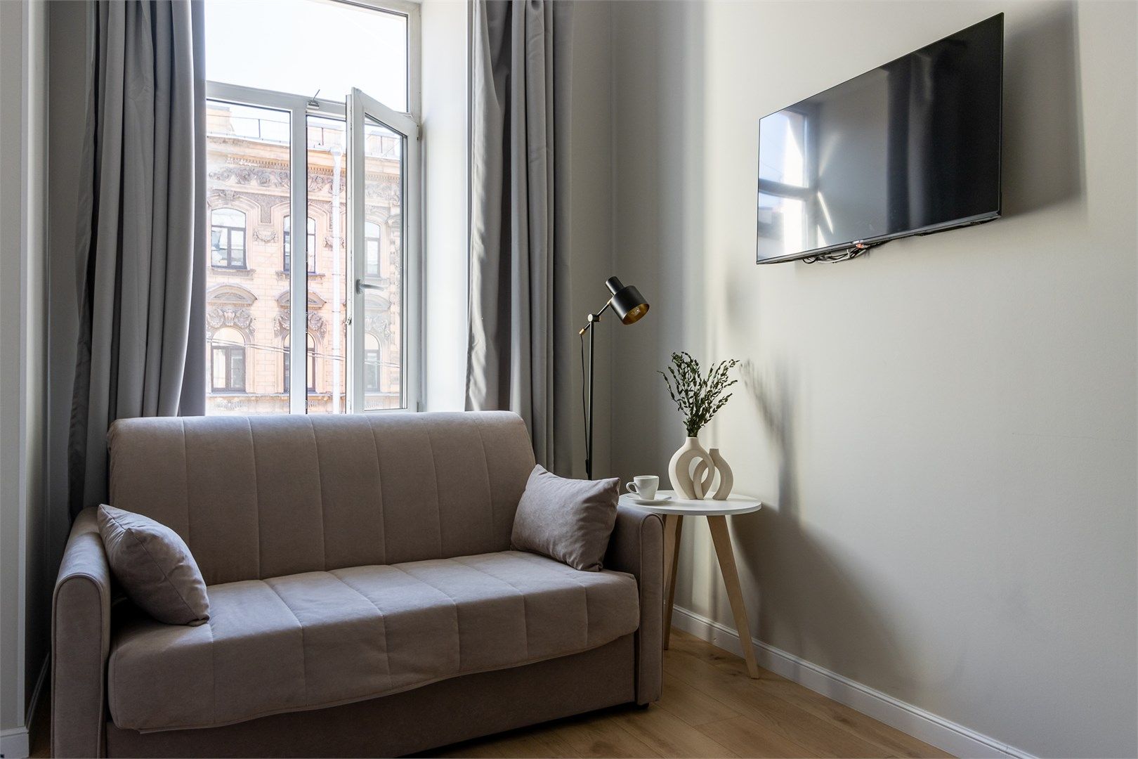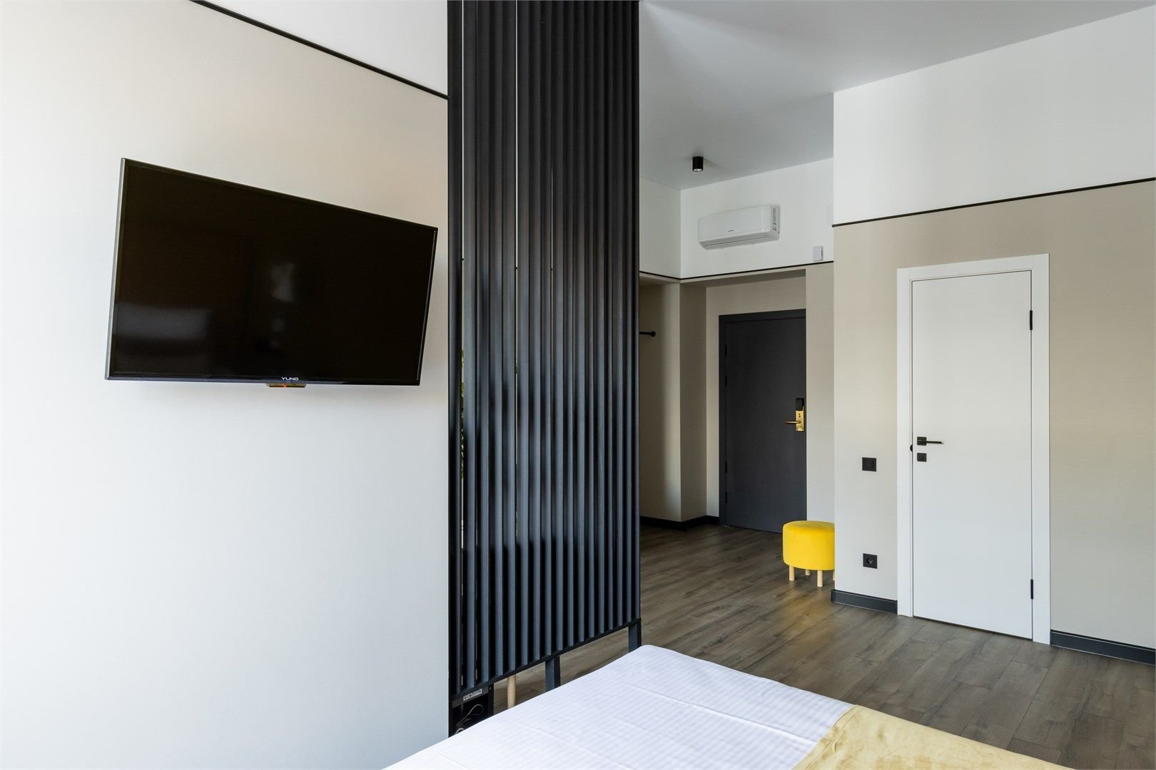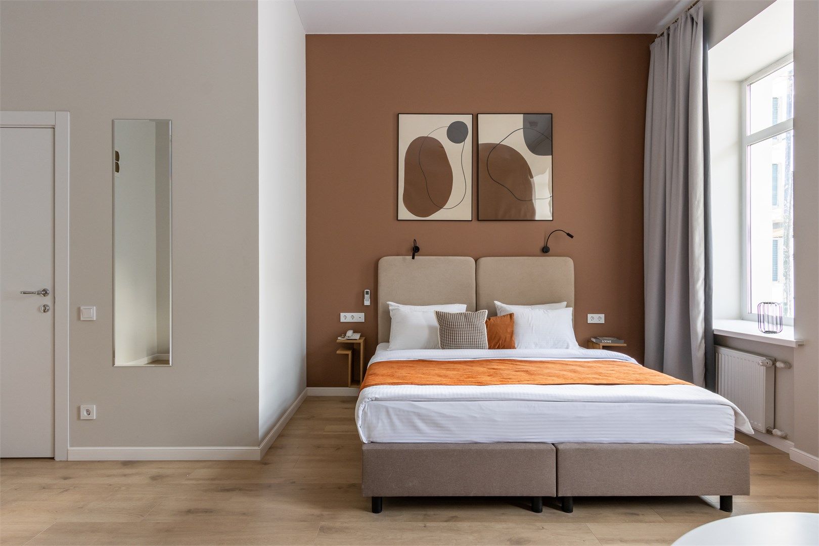 Звукоизолированный номер-студио с мини-кухней и кондиционером. В собственной ванной комнате: • Душ • Фен • Бесплатные туалетно-косметические принадлежности • Тапочки • Полотенца Вид: • Вид на город • Вид во внутренний дворик Удобства апартаментов: ​ • Мини-кухня • Холодильник • Плита • Микроволновая печь • Кухонные принадлежности • Кондиционер • Телефон • Отопление • Деревянный или паркетный пол •...