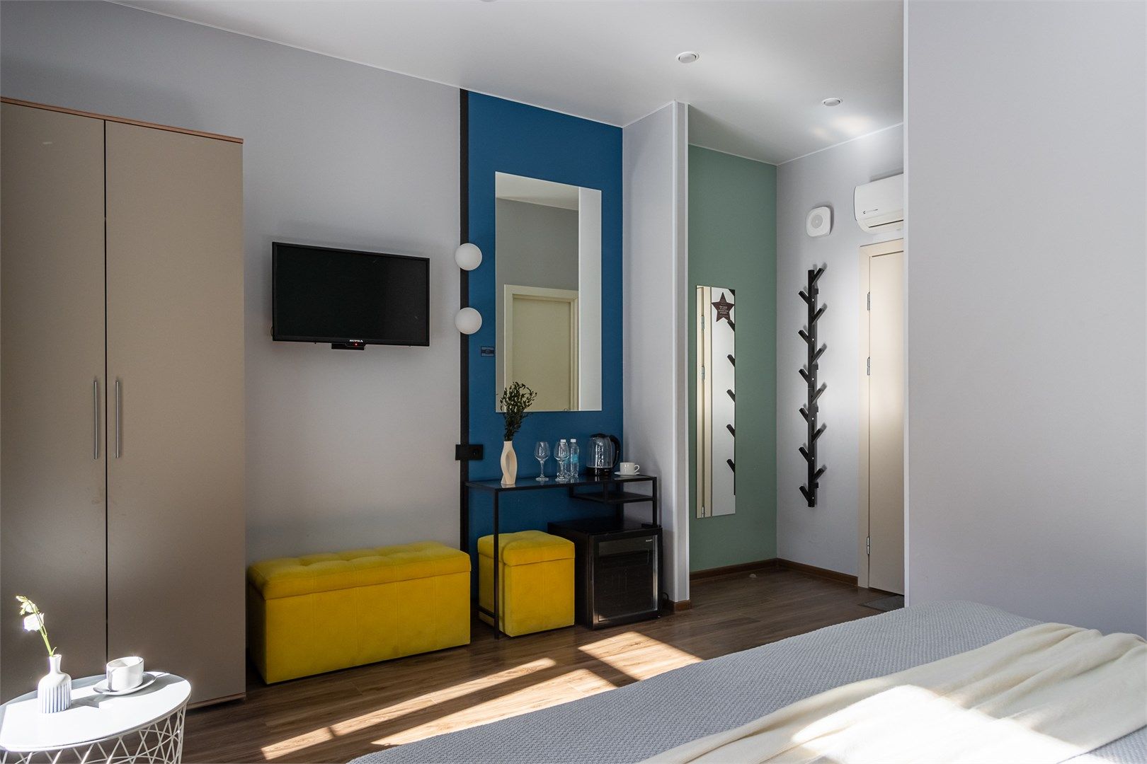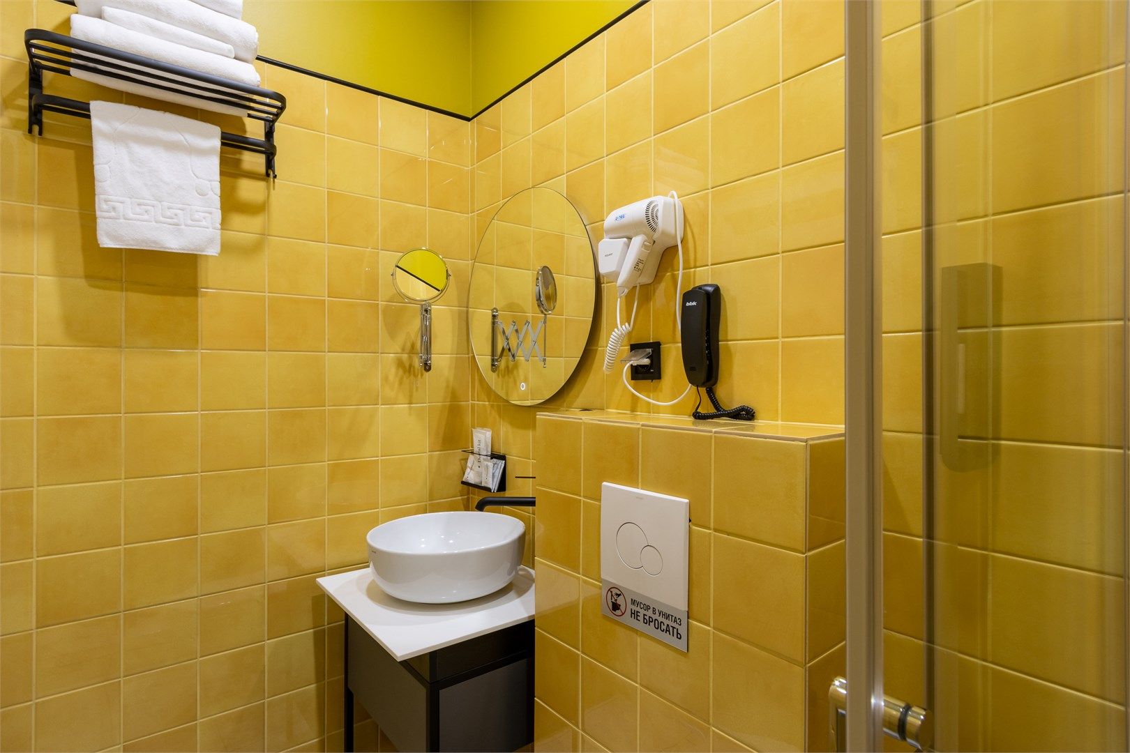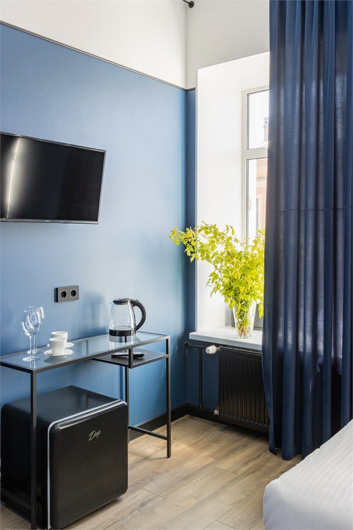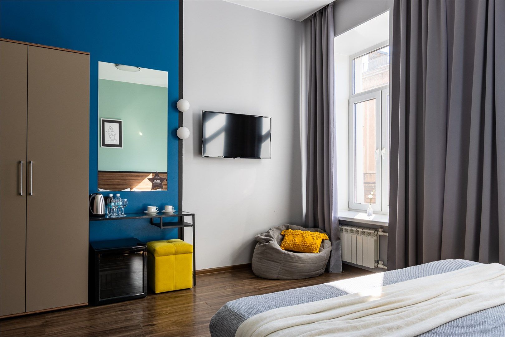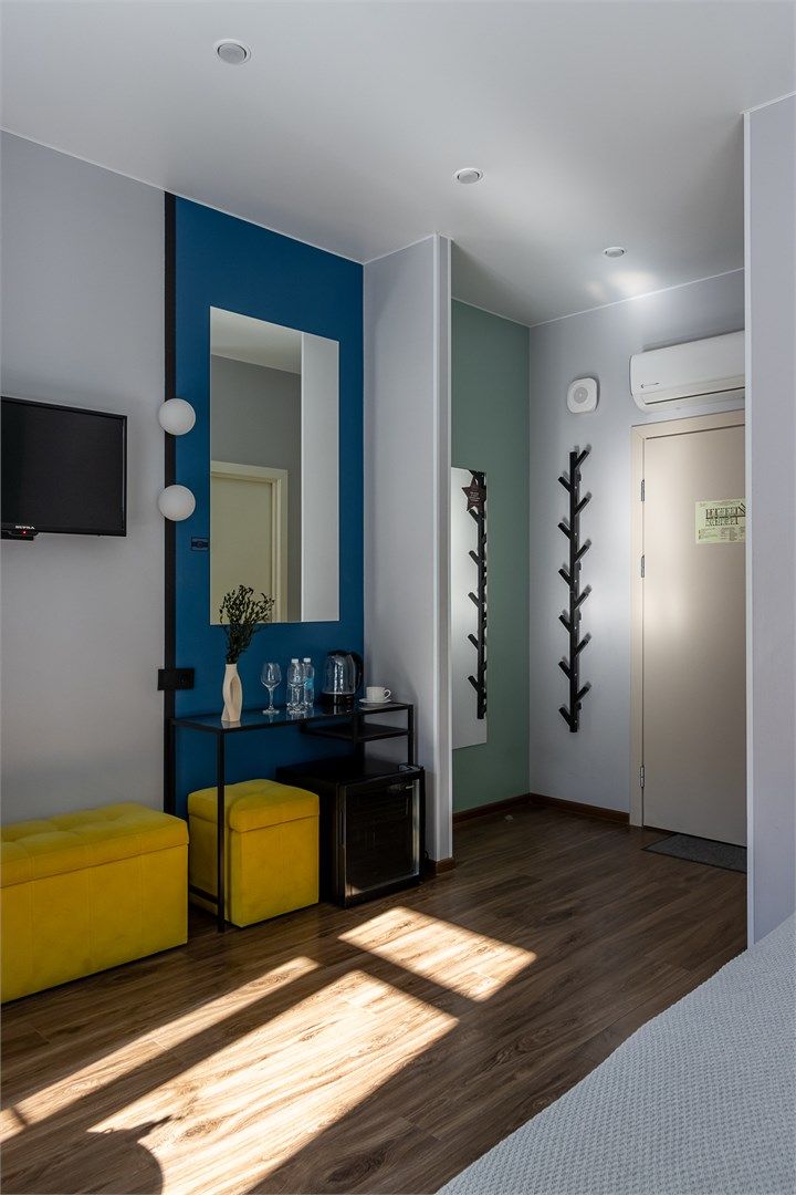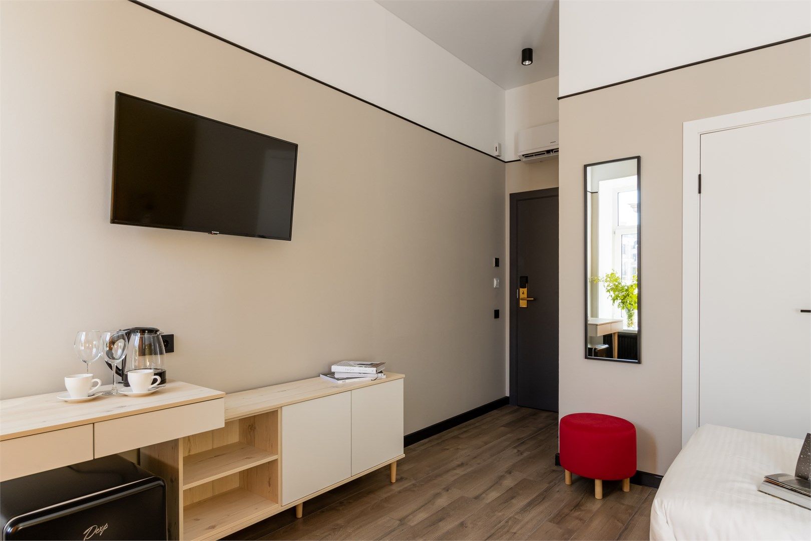 Звукоизолированный двухместный номер с 1 кроватью, электрическим чайником и плоским телевизором. В собственной ванной комнате: • Душ • Фен • Бесплатные туалетно-косметические принадлежности • Тапочки • Полотенца Вид: • Вид на город • Вид во внутренний дворик Услуги и удобства: ​ • Холодильник • Кондиционер • Телефон • Отопление • Деревянный или паркетный пол • Звукоизоляция • Услуга «звонок-будиль...