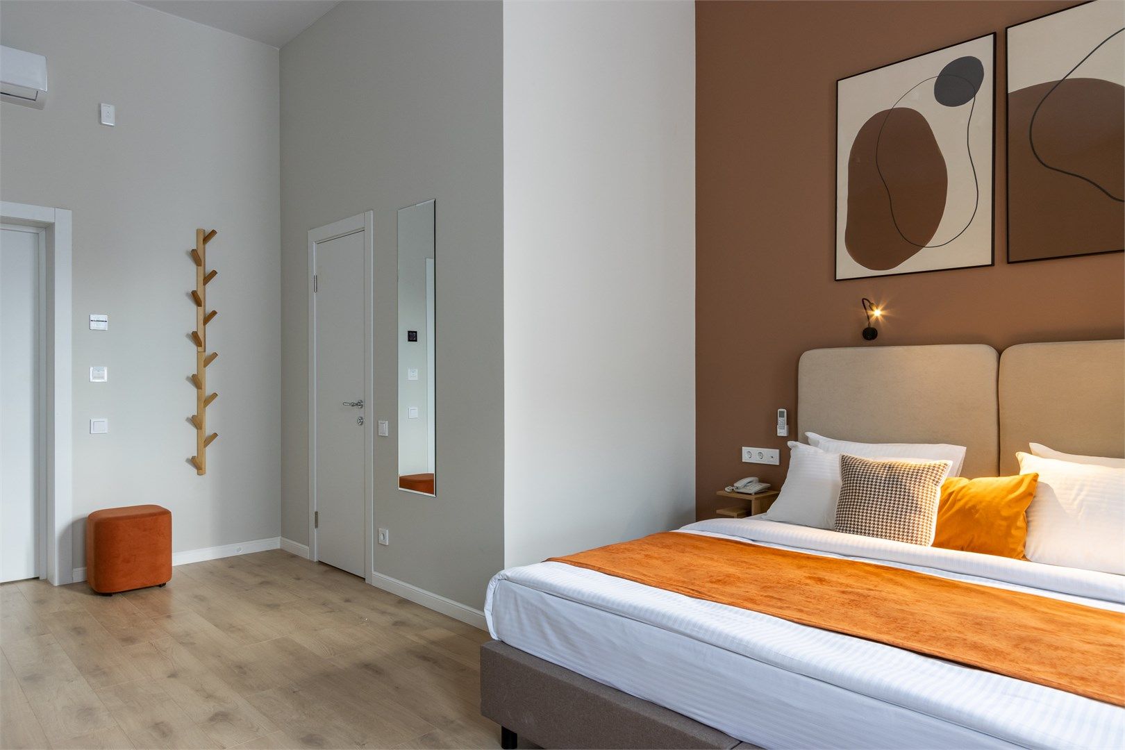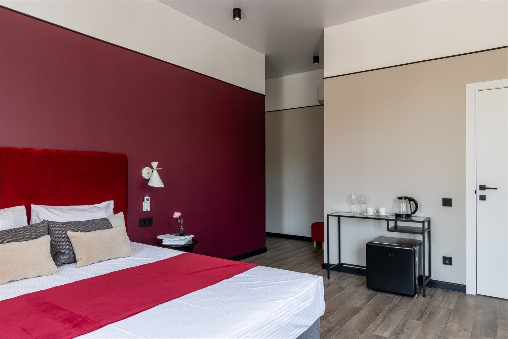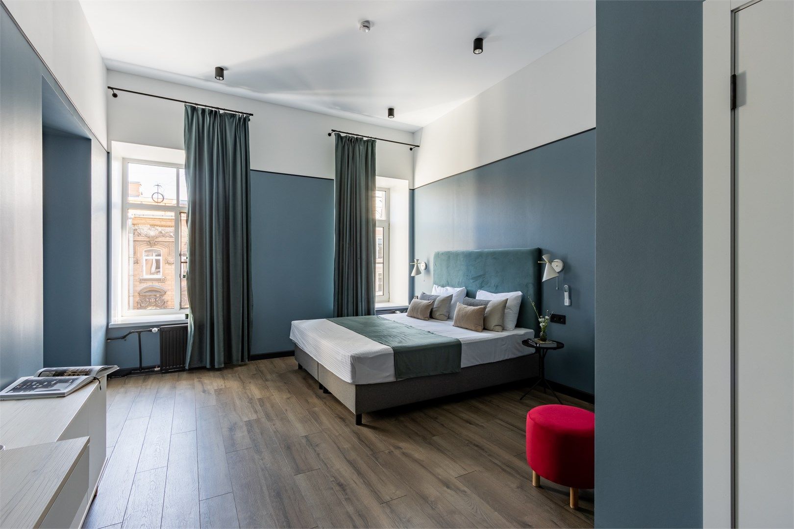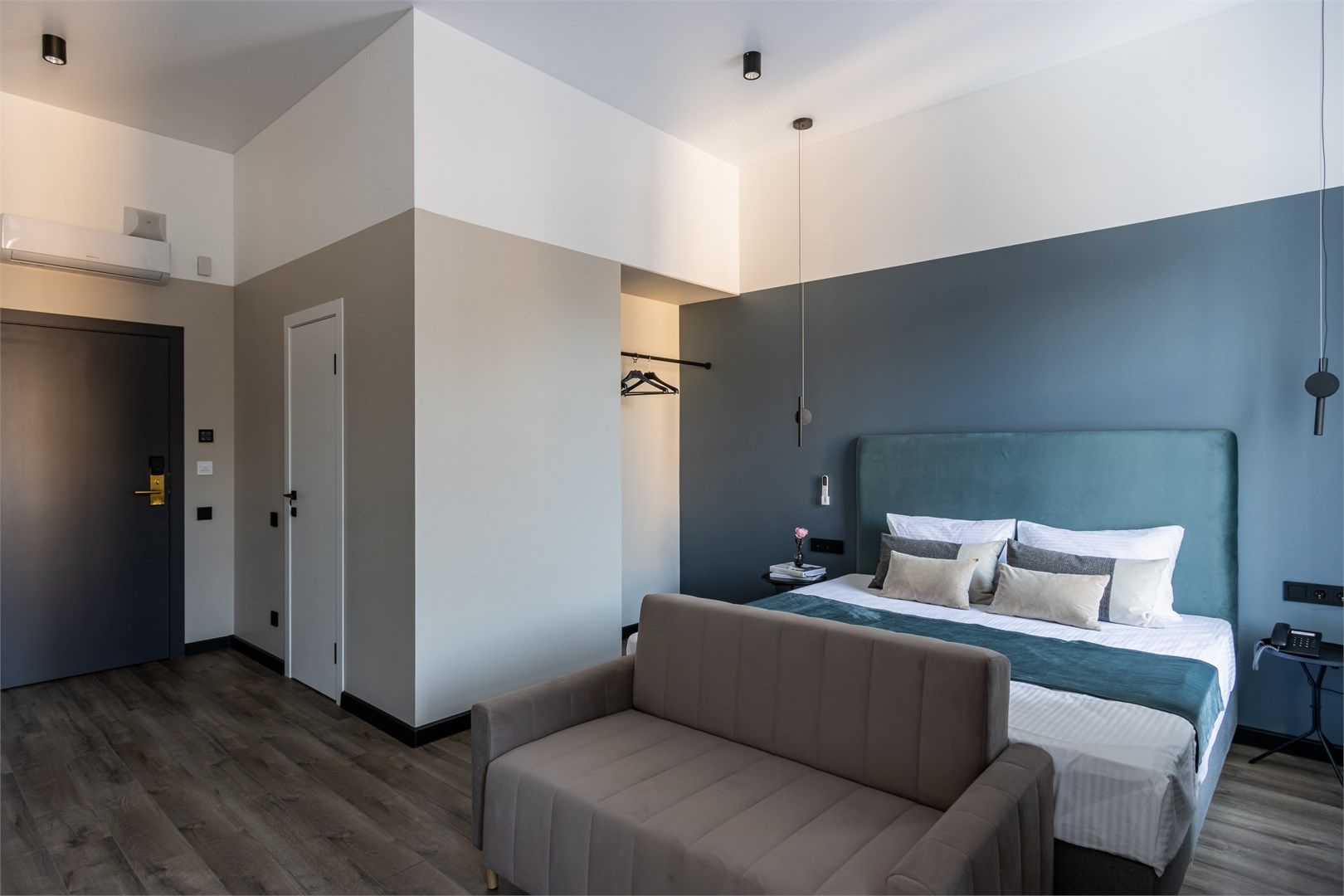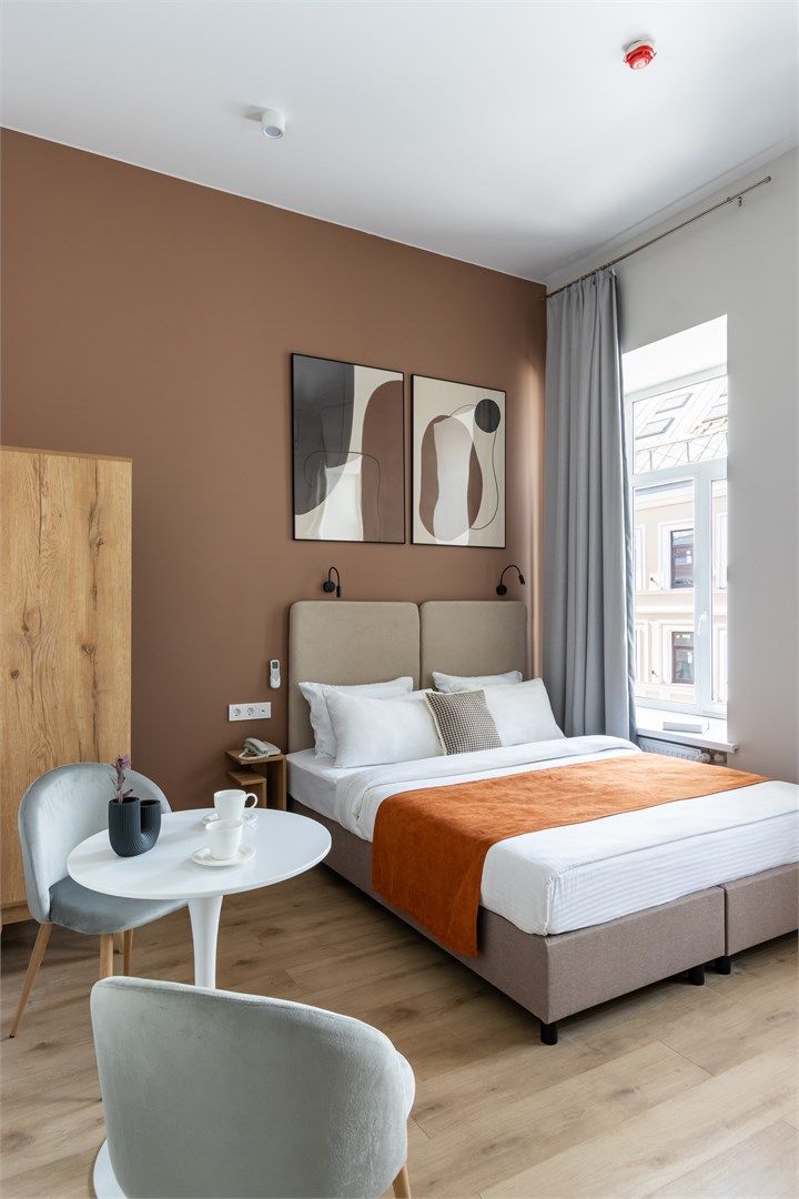 Звукоизолированный двухместный номер с 1 кроватью, электрическим чайником и плоским телевизором. В собственной ванной комнате: • Душ • Фен • Бесплатные туалетно-косметические принадлежности • Тапочки • Полотенца Вид: • Вид на город • Вид во внутренний дворик Услуги и удобства: ​ • Холодильник • Кондиционер • Телефон • Отопление • Деревянный или паркетный пол • Звукоизоляция • Услуга «звонок-будиль...