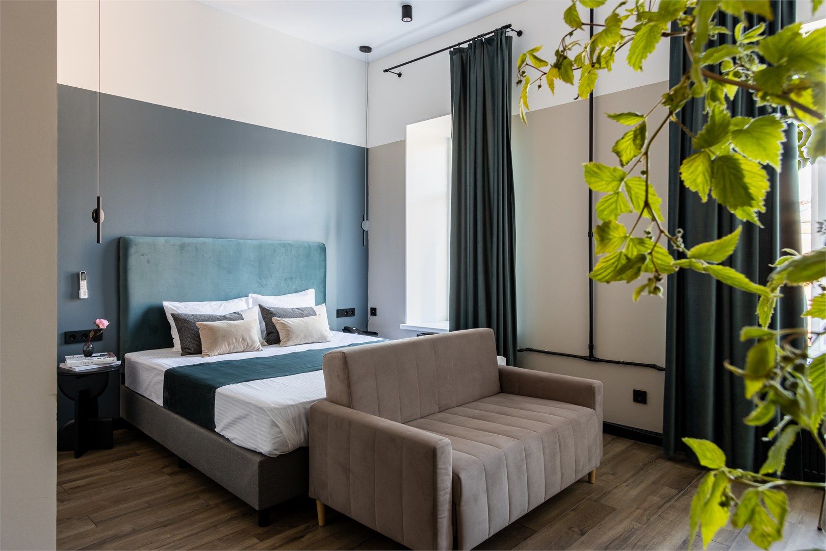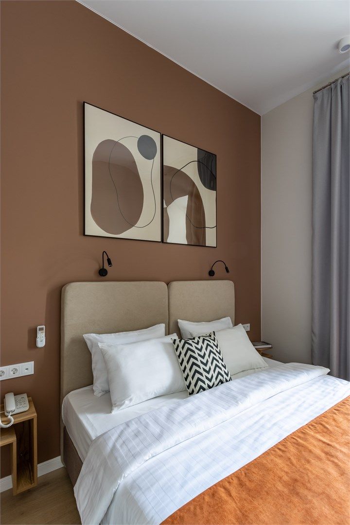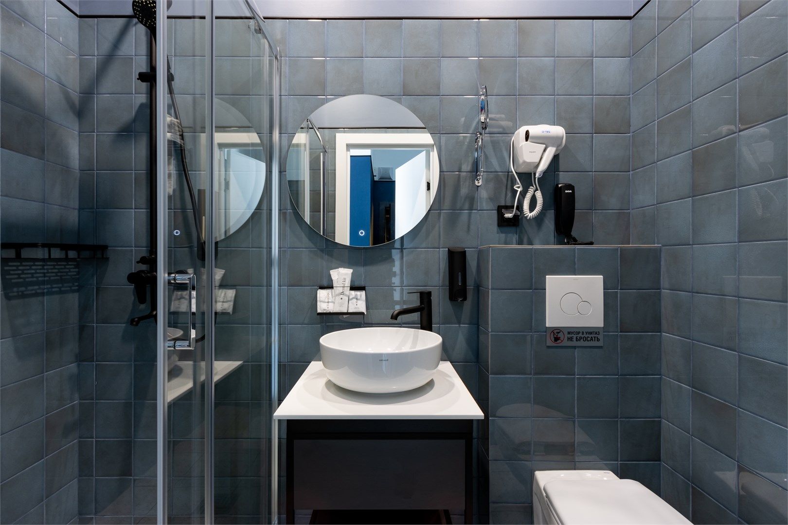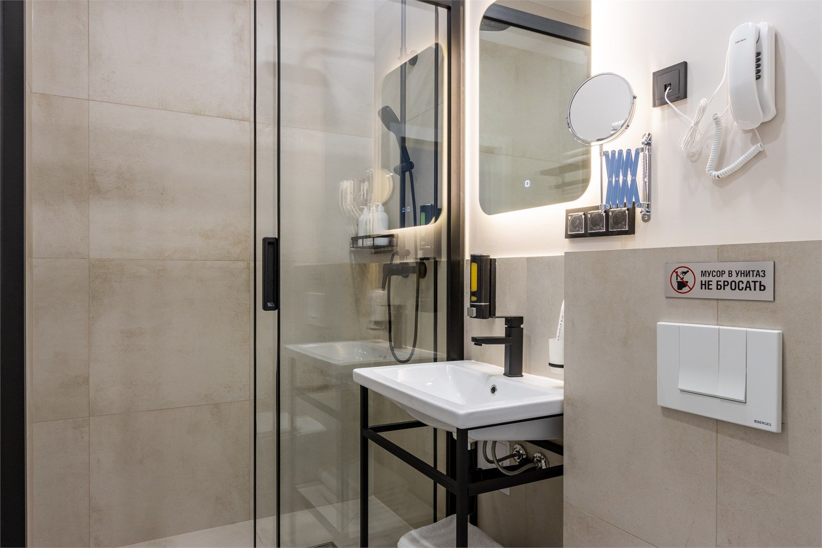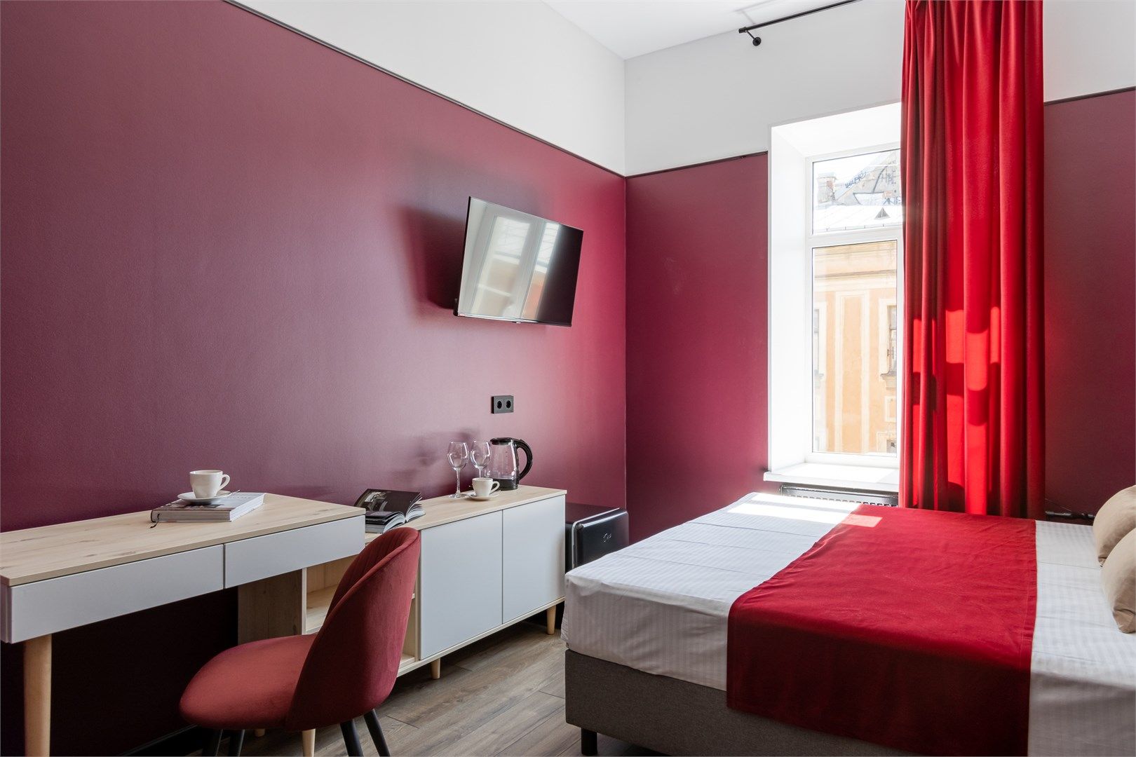 Звукоизолированный двухместный номер с 1 кроватью, электрическим чайником и плоским телевизором. В собственной ванной комнате: • Душ • Фен • Бесплатные туалетно-косметические принадлежности • Тапочки • Полотенца Вид: • Вид на город • Вид во внутренний дворик Услуги и удобства: ​ • Холодильник • Кондиционер • Телефон • Отопление • Деревянный или паркетный пол • Звукоизоляция • Услуга «звонок-будиль...