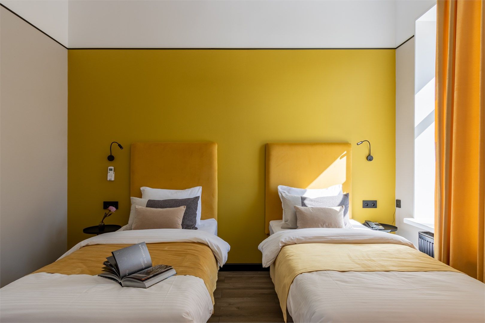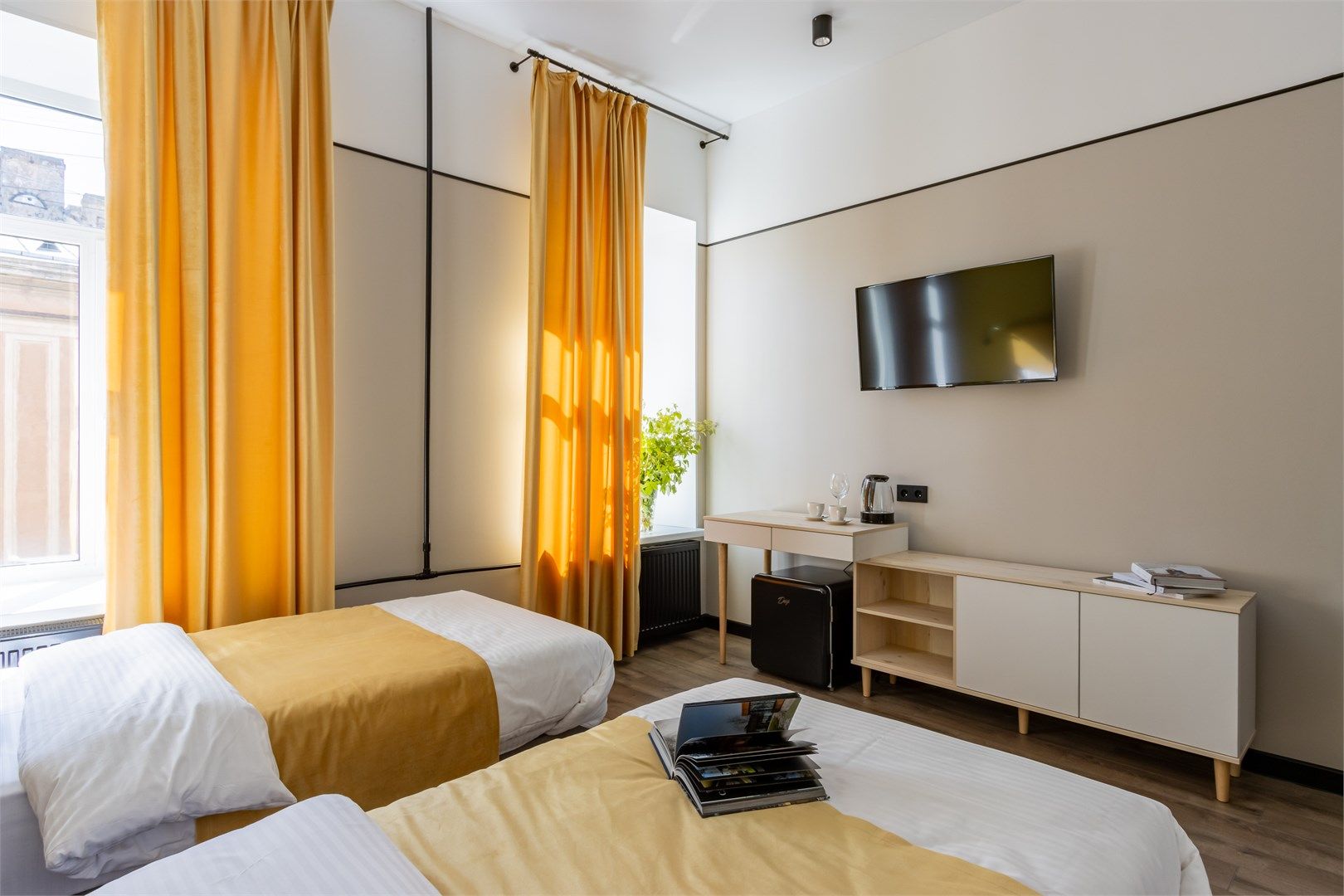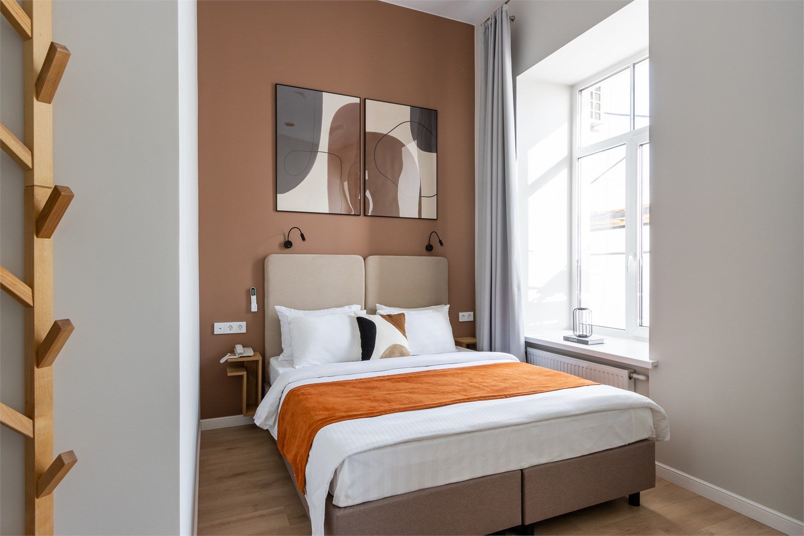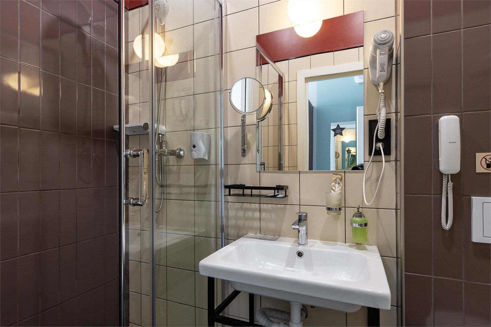 Звукоизолированный двухместный номер с 1 кроватью или 2 раздельными кроватями, электрическим чайником и плоским телевизором. В собственной ванной комнате: • Душ • Фен • Бесплатные туалетно-косметические принадлежности • Тапочки • Полотенца Вид: • Вид на город • Вид во внутренний дворик Услуги и удобства: ​ • Холодильник • Кондиционер • Телефон • Отопление • Деревянный или паркетный пол • Звукоизол...