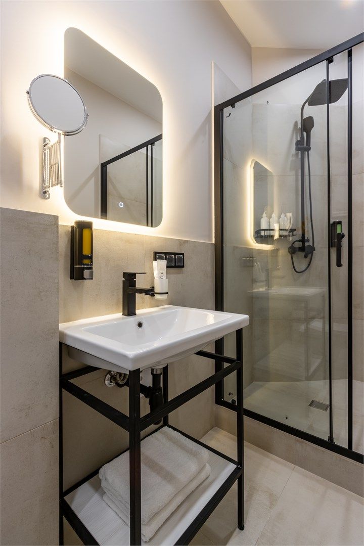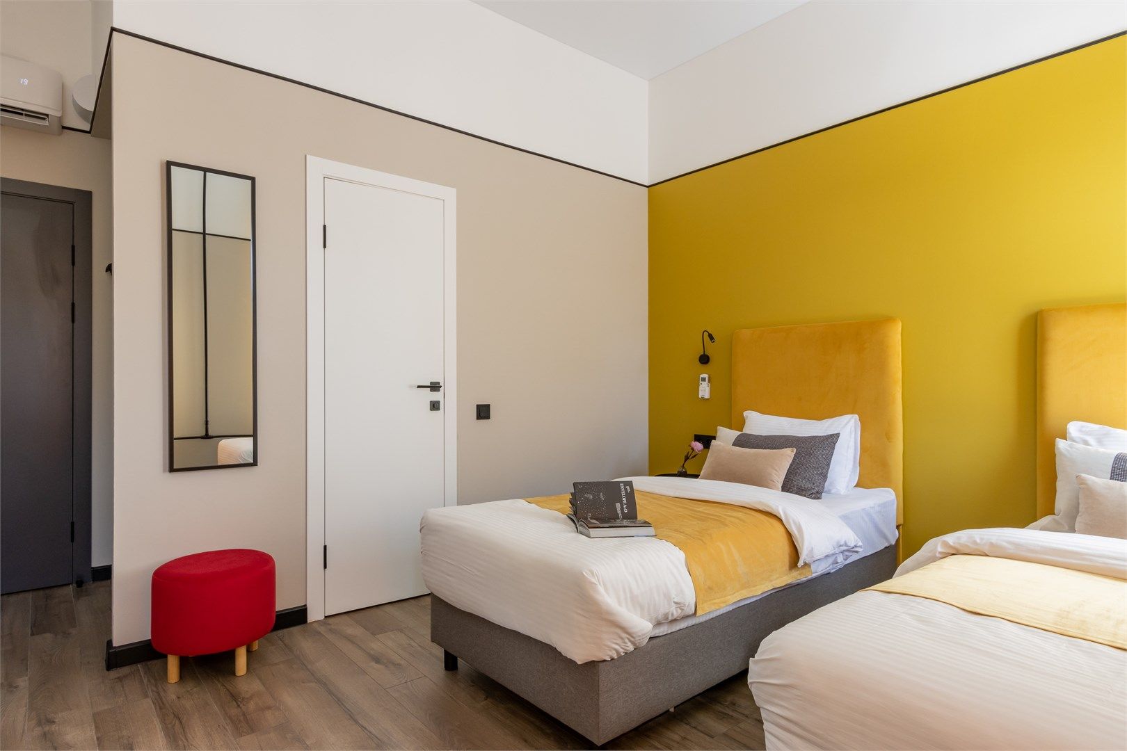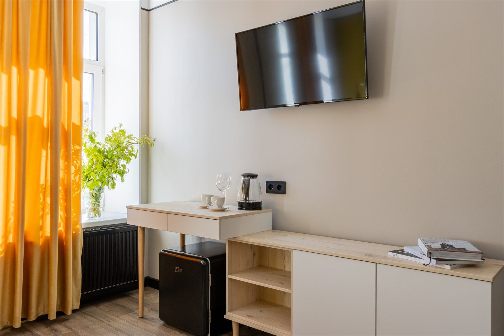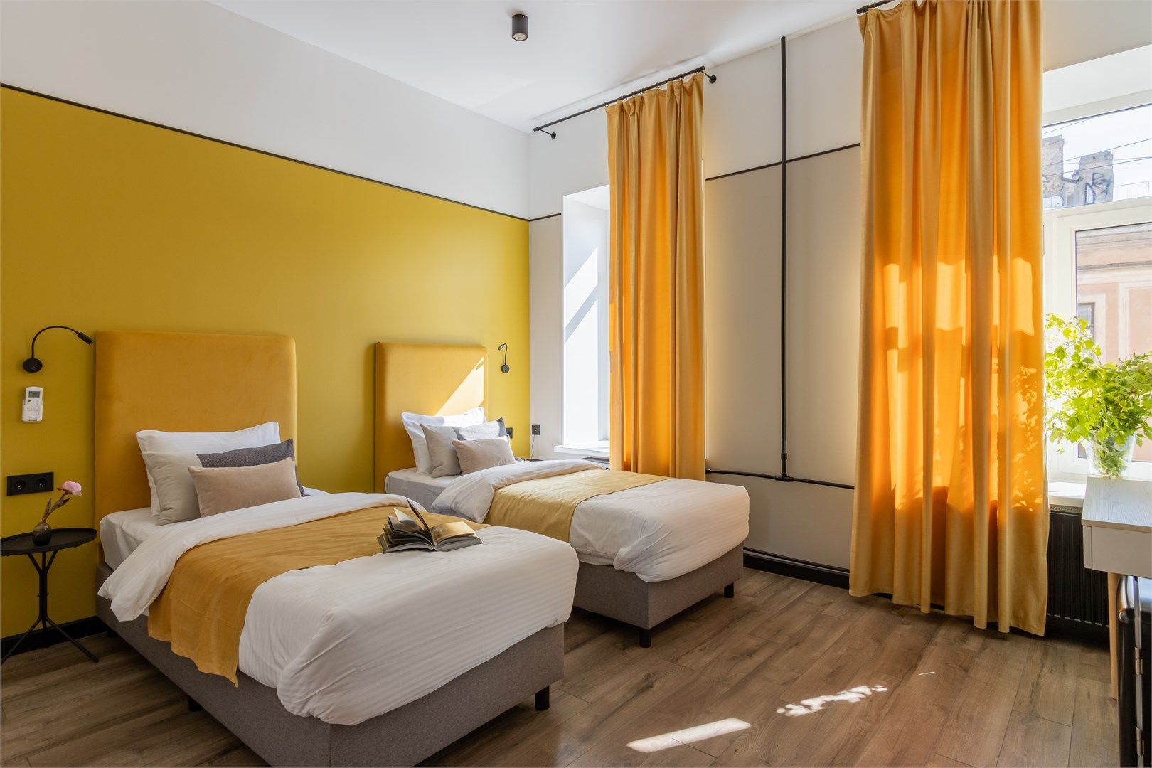 Звукоизолированный двухместный номер с 1 кроватью или 2 раздельными кроватями, электрическим чайником и плоским телевизором. В собственной ванной комнате: • Душ • Фен • Бесплатные туалетно-косметические принадлежности • Тапочки • Полотенца Вид: • Вид на город • Вид во внутренний дворик Услуги и удобства: ​ • Холодильник • Кондиционер • Телефон • Отопление • Деревянный или паркетный пол • Звукоизол...