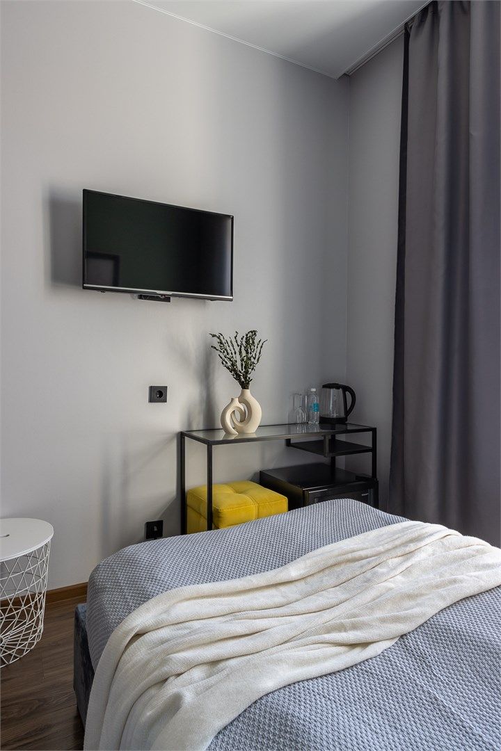 Звукоизолированный одноместный номер с телевизором с плоским экраном. В собственной ванной комнате: • Душ • Фен • Бесплатные туалетно-косметические принадлежности • Тапочки • Полотенца Вид: • Вид на город Удобства номера: ​ • Холодильник • Кондиционер • Телефон • Отопление • Деревянный или паркетный пол • Звукоизоляция • Услуга «звонок-будильник» • Москитная сетка • Шкаф или гардероб • Белье • Лес...