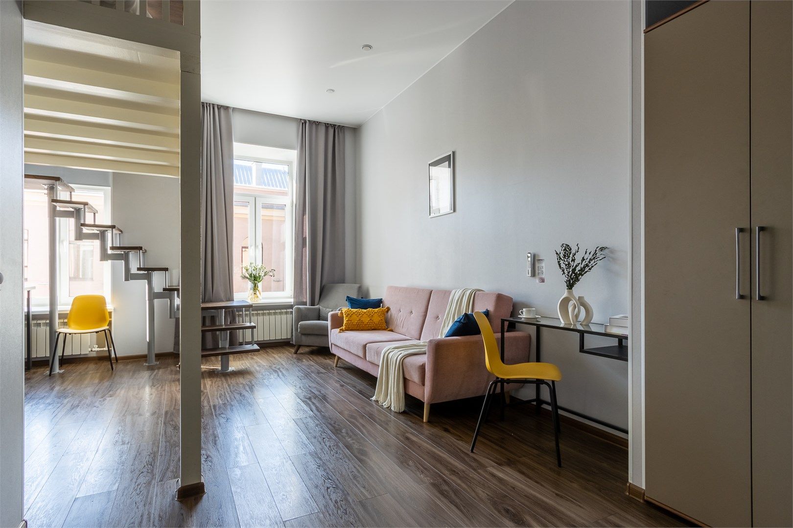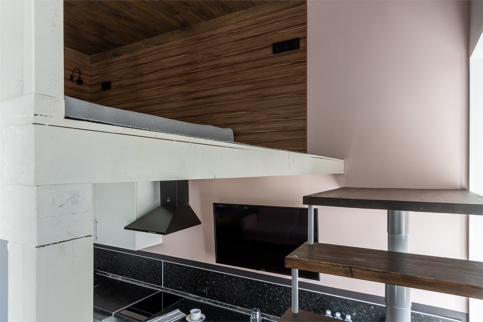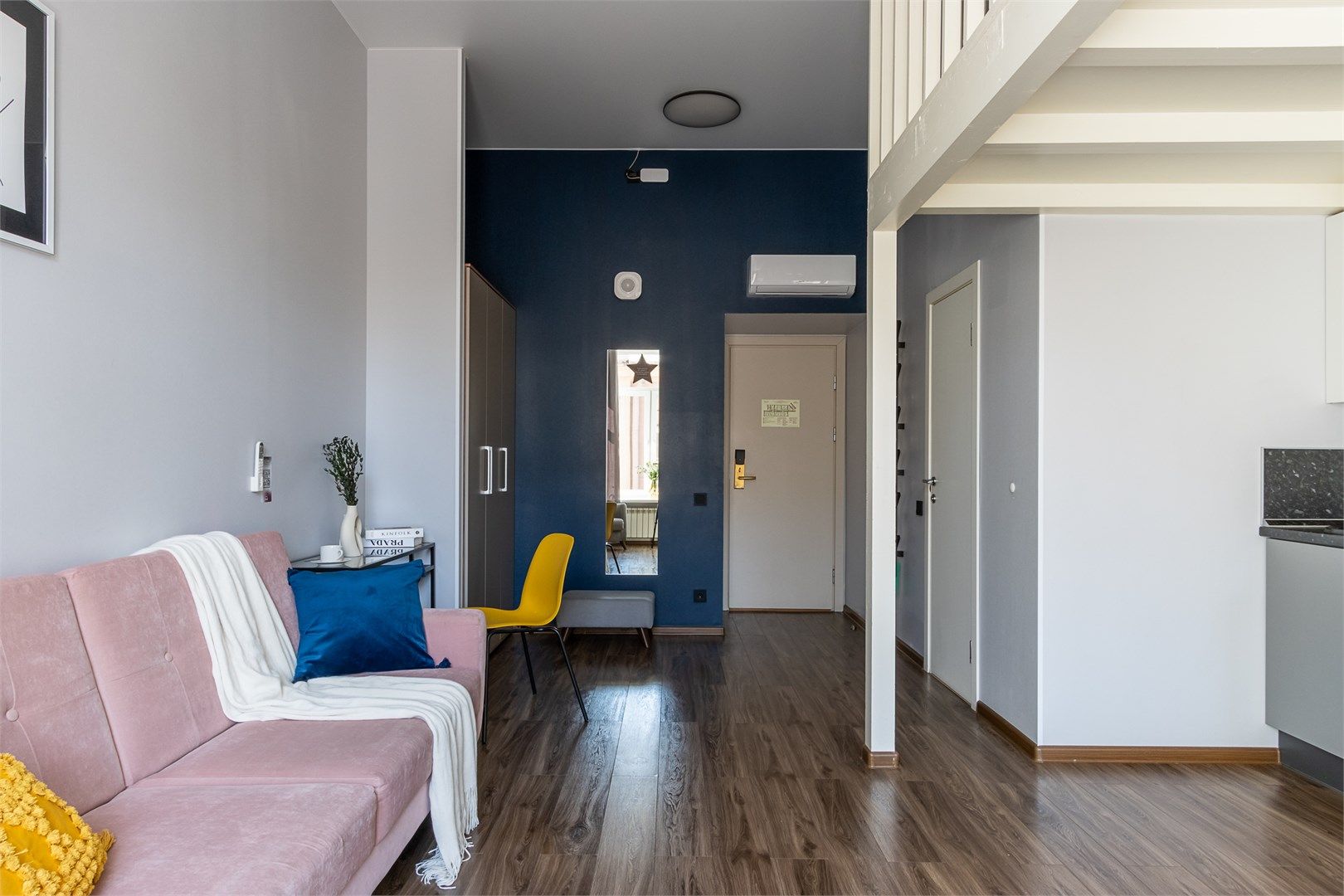Двухуровневый номер с мини-кухней, двуспальной кроватью и диваном. В собственной ванной комнате: • Душ • Фен • Бесплатные туалетно-косметические принадлежности • Тапочки • Полотенца Вид: • Вид на город • Вид во внутренний дворик Удобства апартаментов: ​ • Диван • Двуспальная кровать • Мини-кухня • Холодильник • Плита • Микроволновая печь • Кухонные принадлежности • Кондиционер • Телефон • Отоплени...