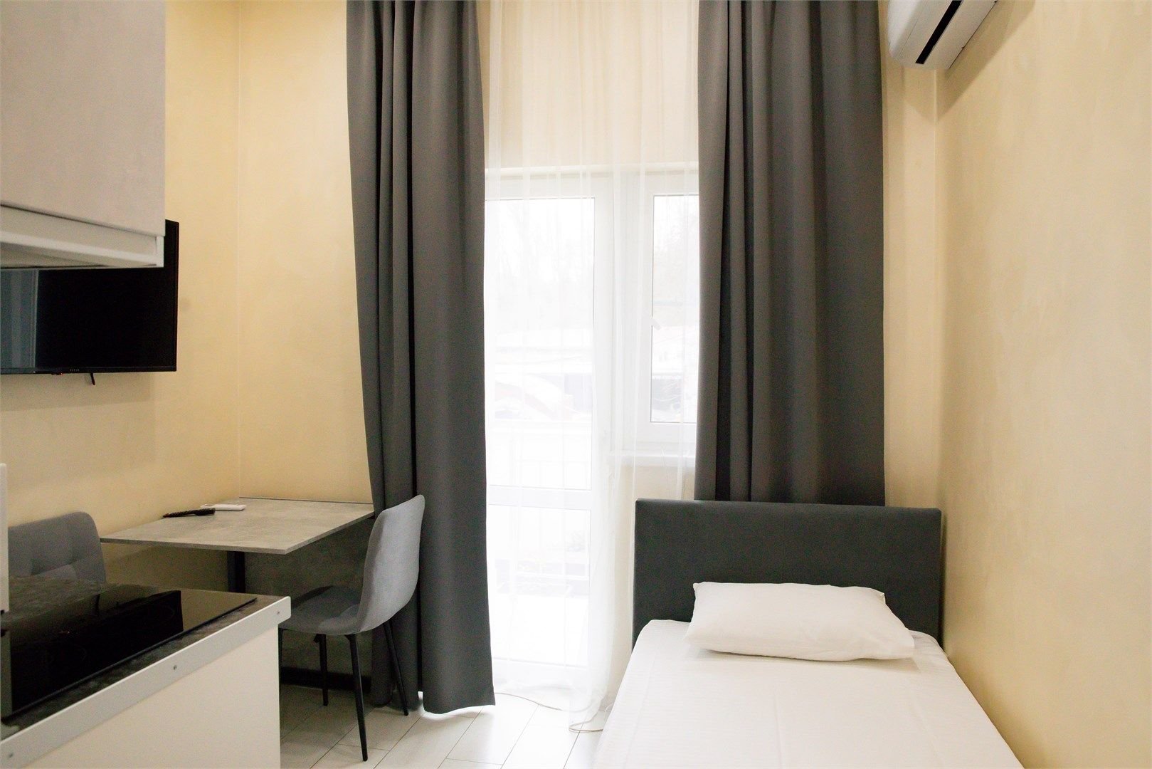 Одноместная студия с балконом - уютное пространство для комфортного отдыха в Сочи. Полностью оборудована: современная кухня, удобная кровать, светлый интерьер и собственный балкон для утреннего кофе или вечернего отдыха. Идеально для тех, кто ценит приватность и удобство....