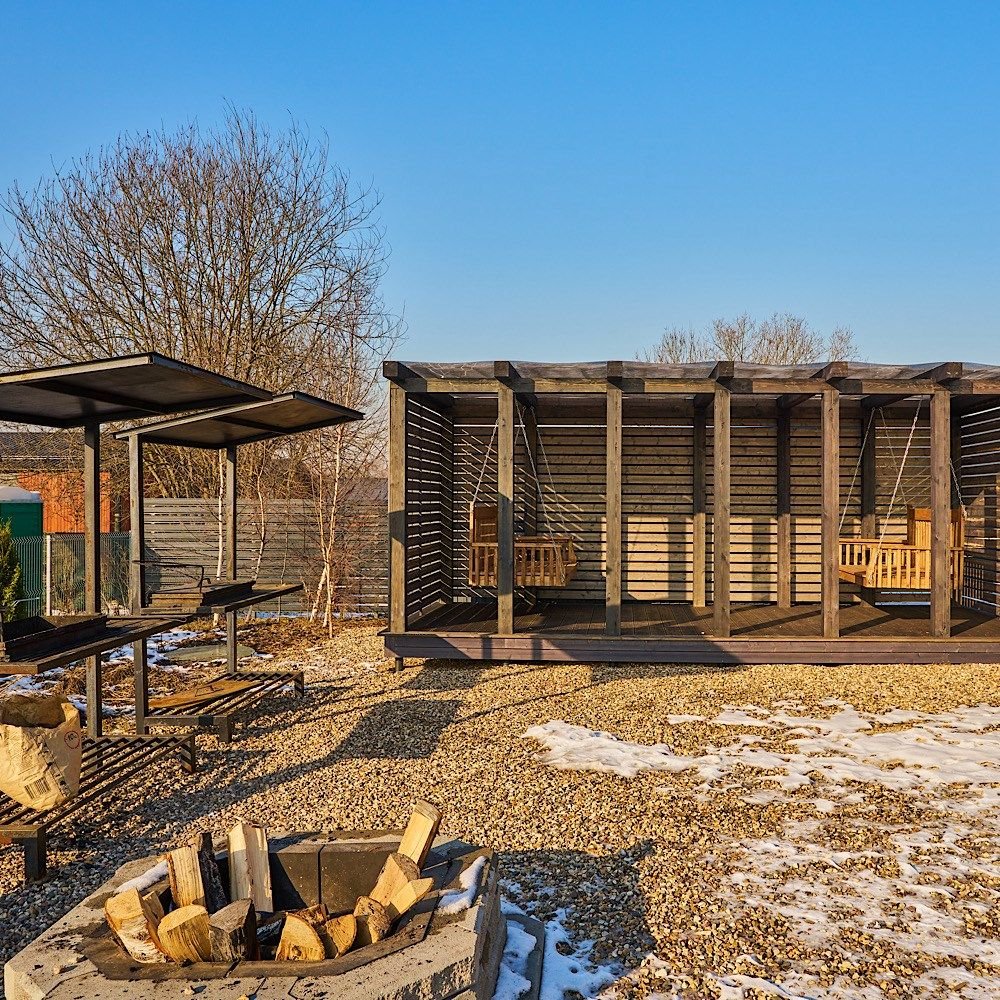 Завершить насыщенный день можно за увлекательной беседой, расположившись на крытой террасе с уютными креслами, навесным гамаком, столиком и приятной подсветкой.