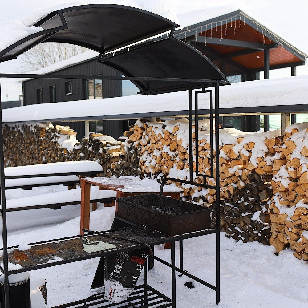 Также вы всегда можете пожарить шашлыки прямо на участке! Перед каждым домом оборудована мангальная зона и обеденный стол со скамьями.