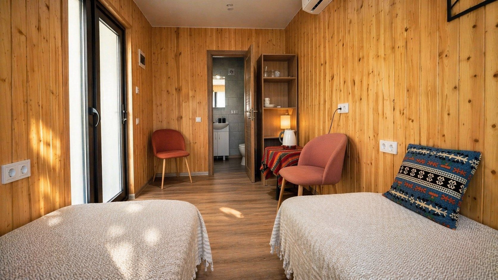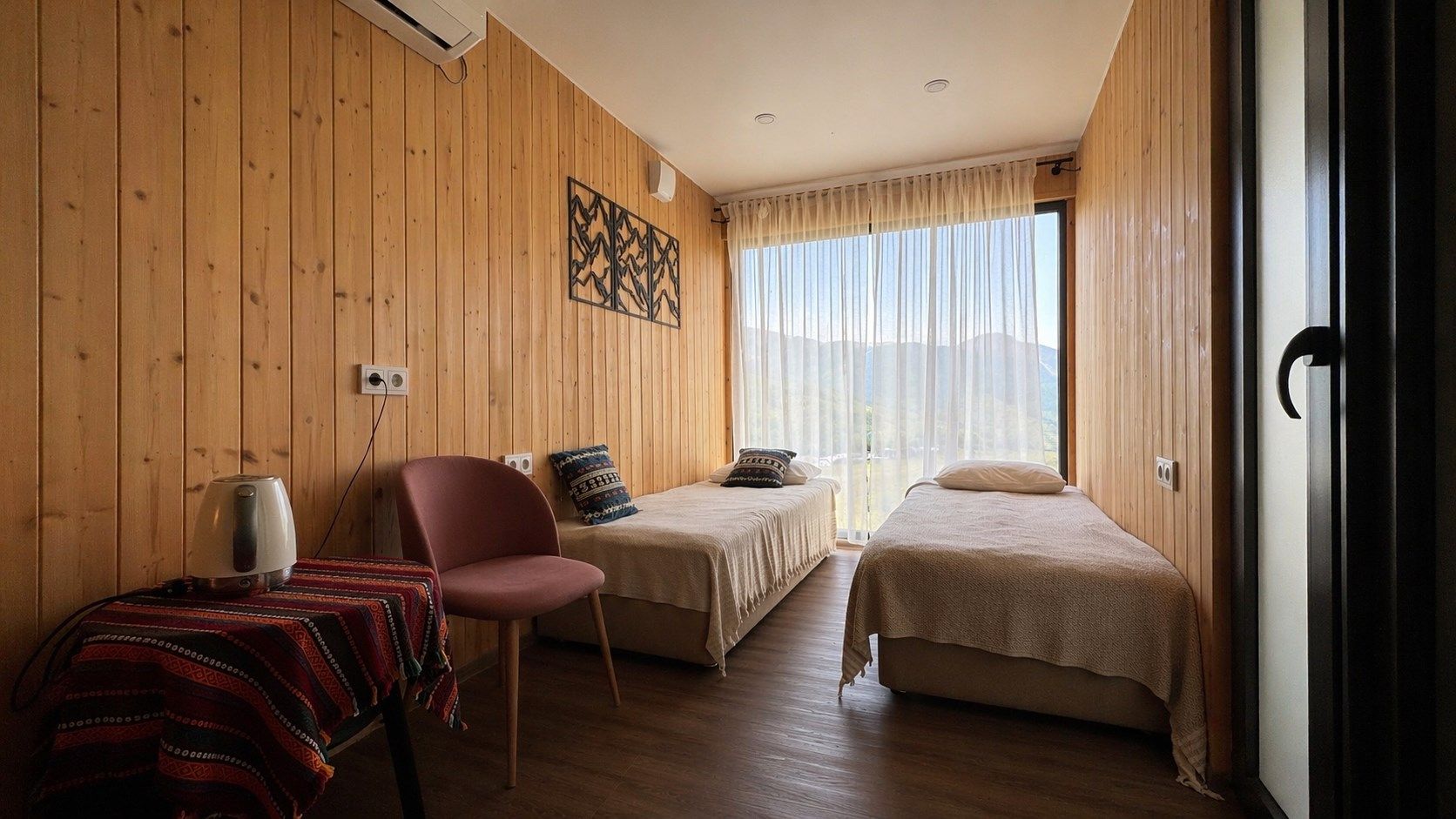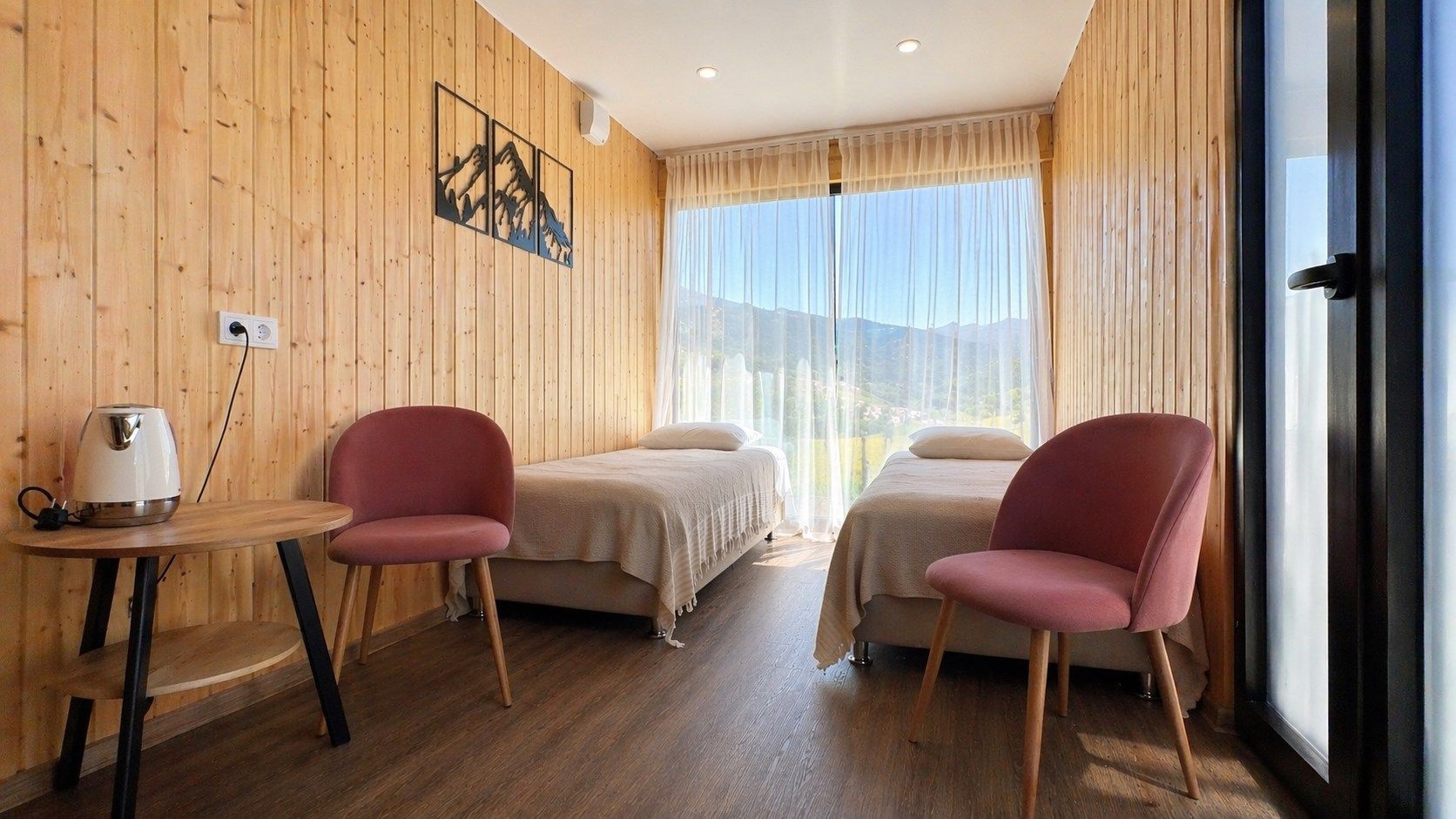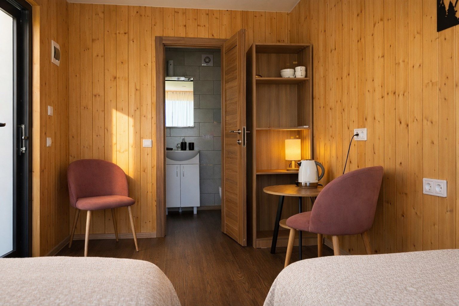 Компактный горный мини-дом с кухонной зоной и всеми удобствами внутри номера.