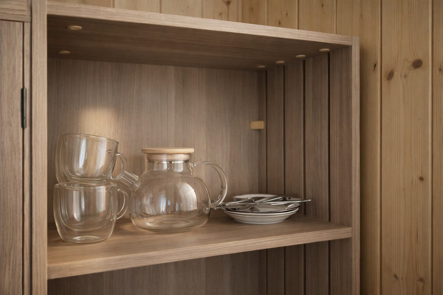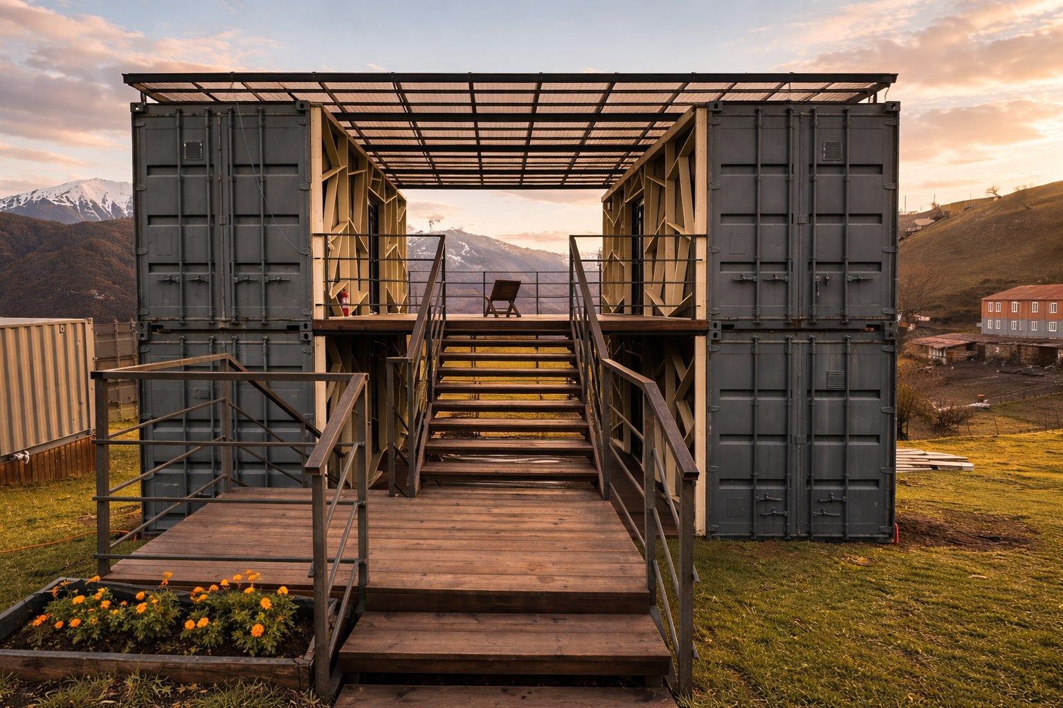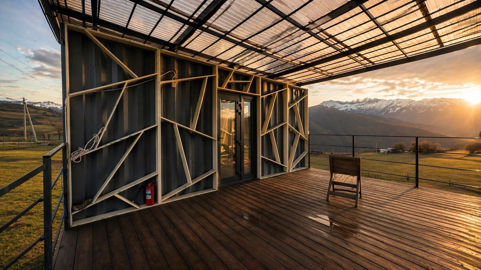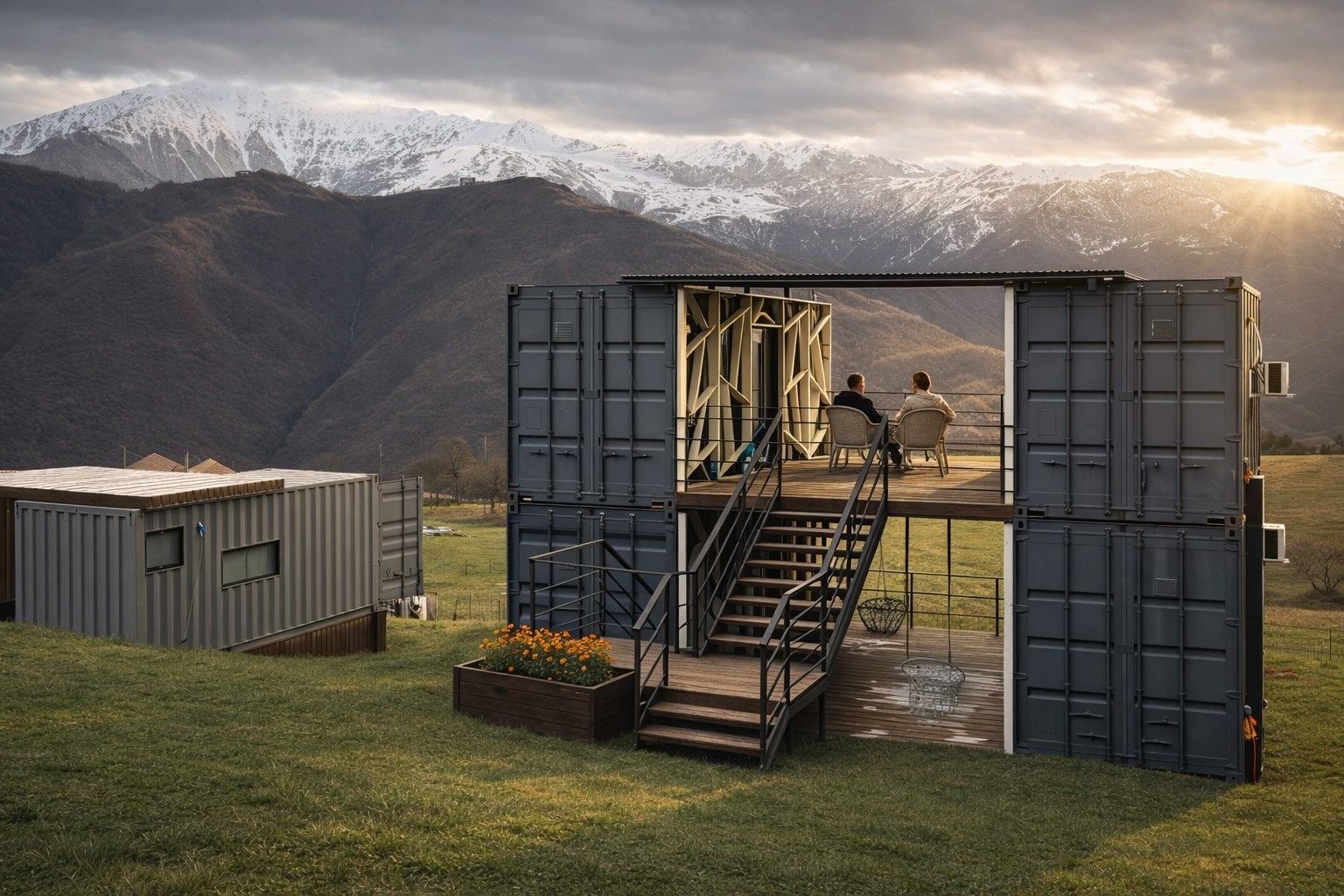 Компактный горный мини-дом с кухонной зоной и всеми удобствами внутри номера.