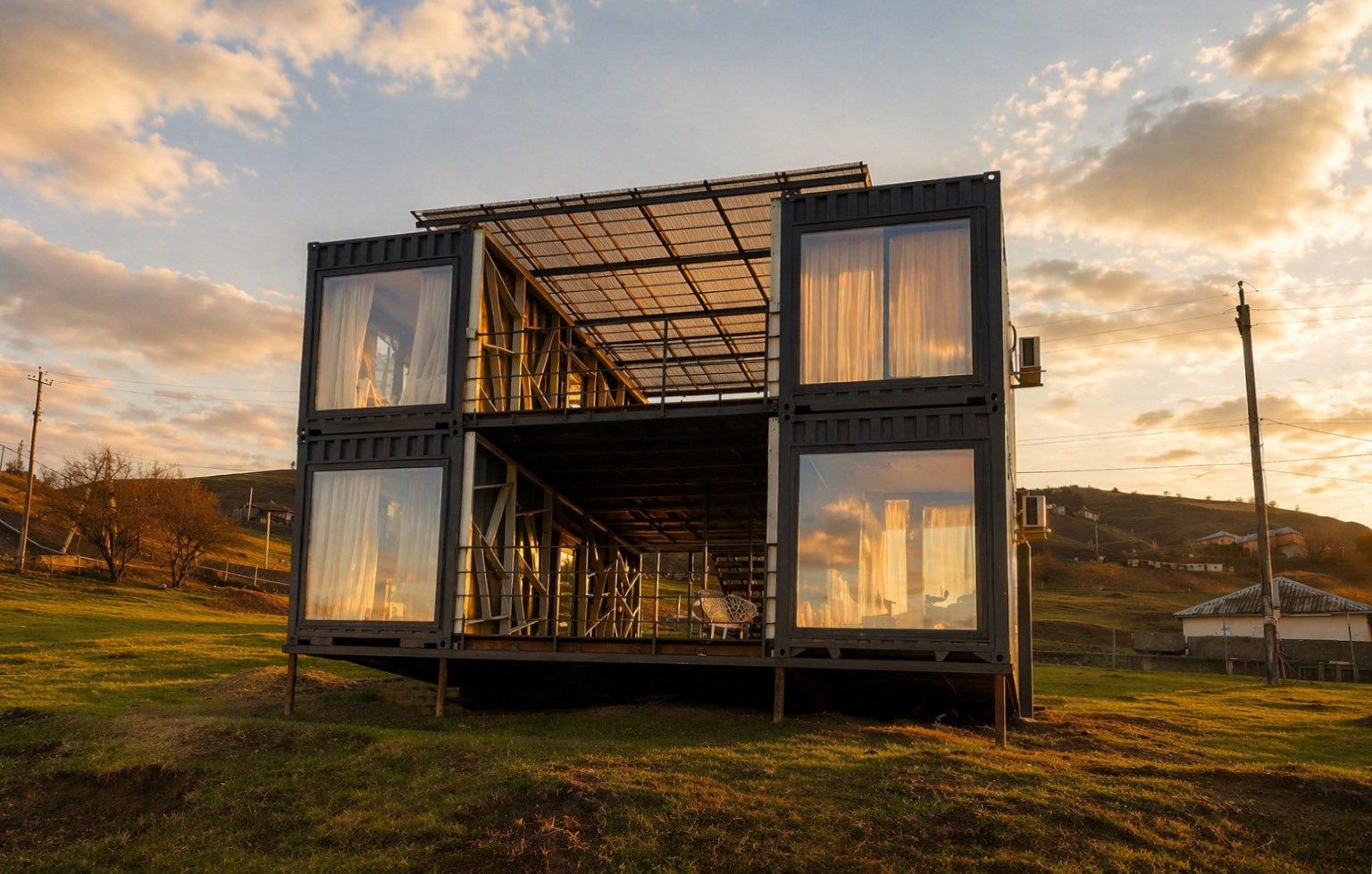 Мини-дом №4 - 12 кв м с панорамным окном и удобствами внутри, включая кондиционер.