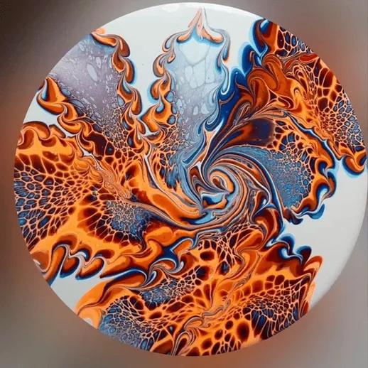 Жидкий акрил разных цветов по очереди или одновременно выливается на холст и смешивается уже на нем, образуя красивый абстрактный рисунок. Изменяя плотность и используемые цвета, вы каждый раз получаете уникальное произведение искусства в стиле абстракции.