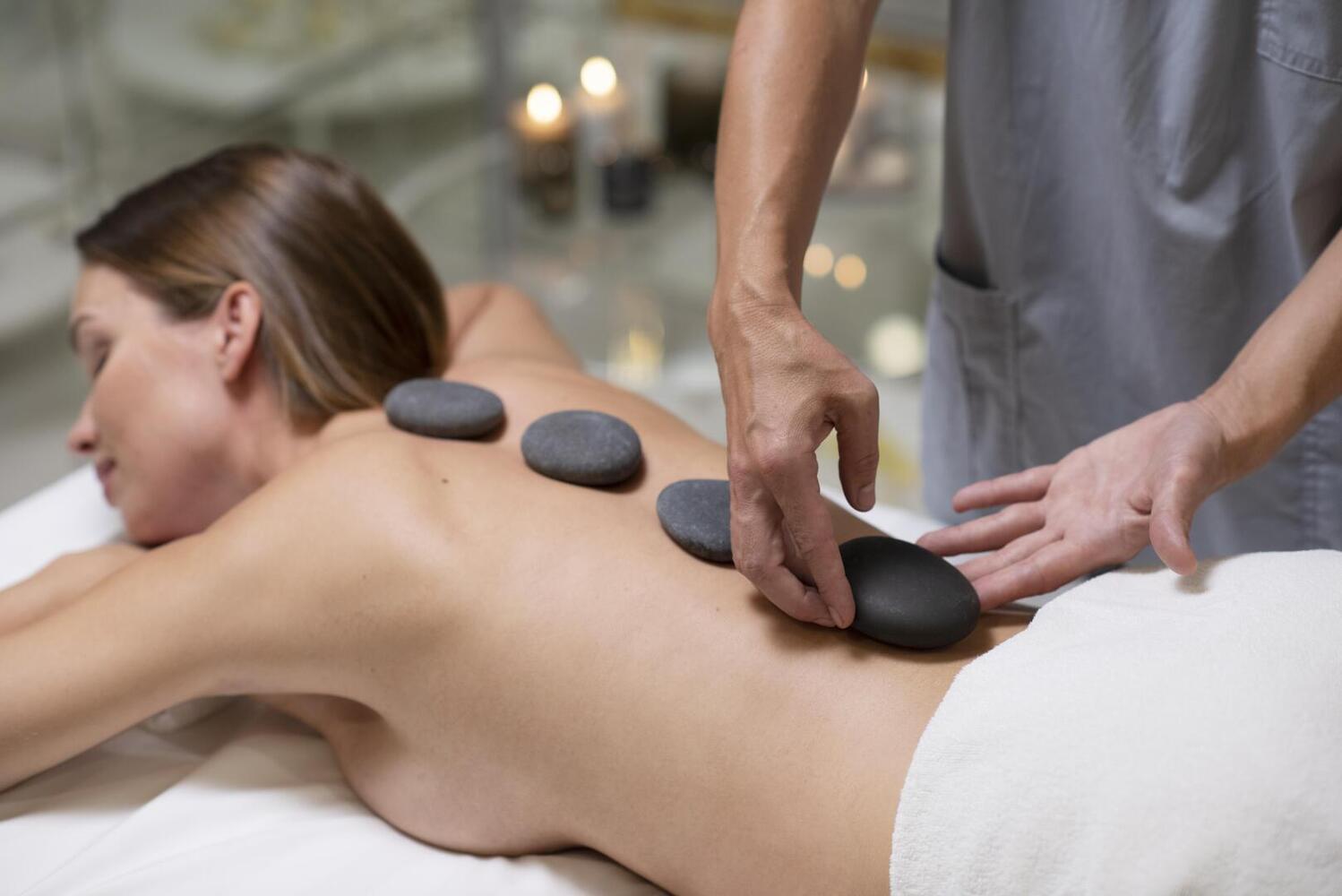 - Статичное тепло: Мы размещаем горячие камни вдоль ключевых энергетических точек вашего тела - на спине, между пальцами ног, на ладонях. Это мягко «открывает» мышцы, подготавливая их к глубокой проработке и снимая общее напряжение.