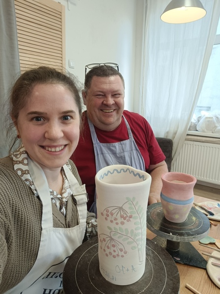 Спасибо большое за мастер-класс (свидание в гончарной мастерской) , было ооооочень круто и здорово! Сам салон был в уютном виде для нас: играла приятная ненавязчивая музыка на фоне, приглушенный свет и гирлянда - было очень красиво и мило), также везде было все чисто, фартуки удобные и комфортные, а если вы забыли свои тапочки, то они беспроблемно предоставляют свои. Отдельное спасибо мастеру Насте (Шибановой), очень приятный и позитивный человек:))) Все показывала и помогала нам! Особенно мне, девочке с длинными ногтями:))) Смеялись и разговаривали весь сеанс, обязательно к вам еще вернемся) Было весело! Срок обжига наших изделий был месяц! Вернемся снова, ждите на роспись!