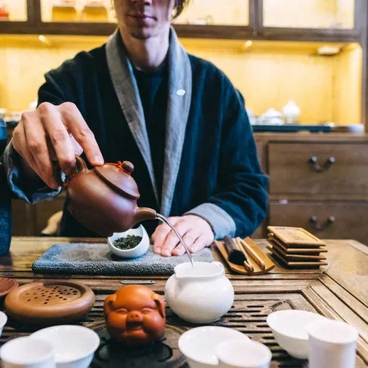 Чай заваривается в исинском чайнике, предварительно наработанном под один конкретный сорт чая.