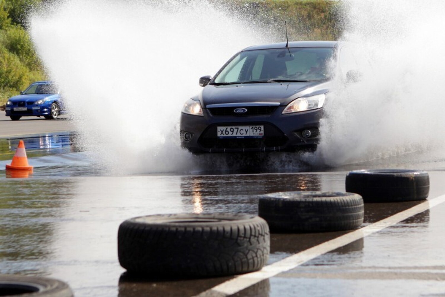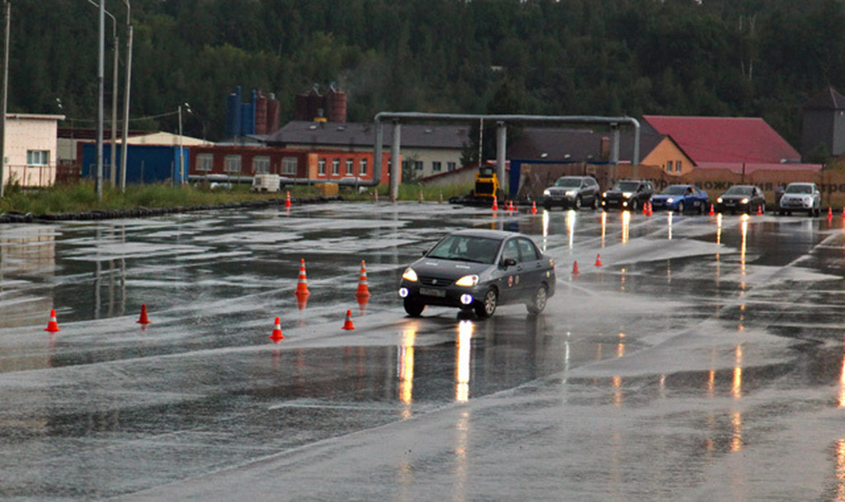 Занятие проходит на специализированной мокрой асфальтовой площадке с длинным авто бассейном для аквапланирования и скользящим кругом для дрифта с фонтаном. Вы научитесь управлению автомобилем на покрытиях с разным коэфициентом сцепления: вода, скользкий мокрый асфальт, сухой асфальт, технике экстренного торможения и пониманию тормозного пути своего автомобиля в разных условиях с учётом ABS. Аквапланирование, скоростной проезд луж и выход из воды на сухой асфальт…. Вы освоите множество интересных и полезных навыков, а также с адреналином и ветерком проведете время!