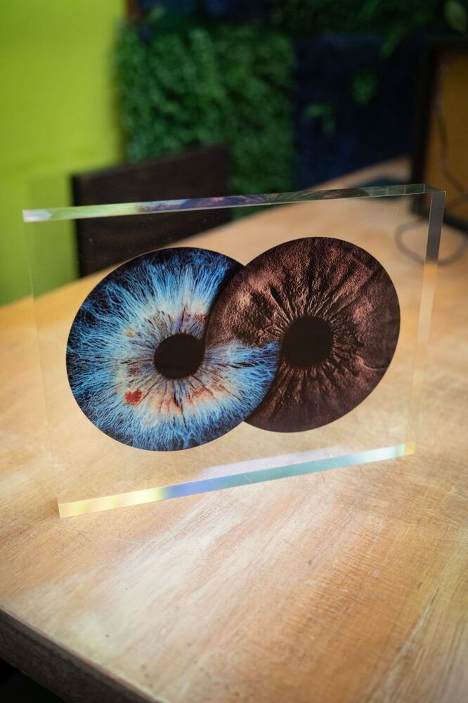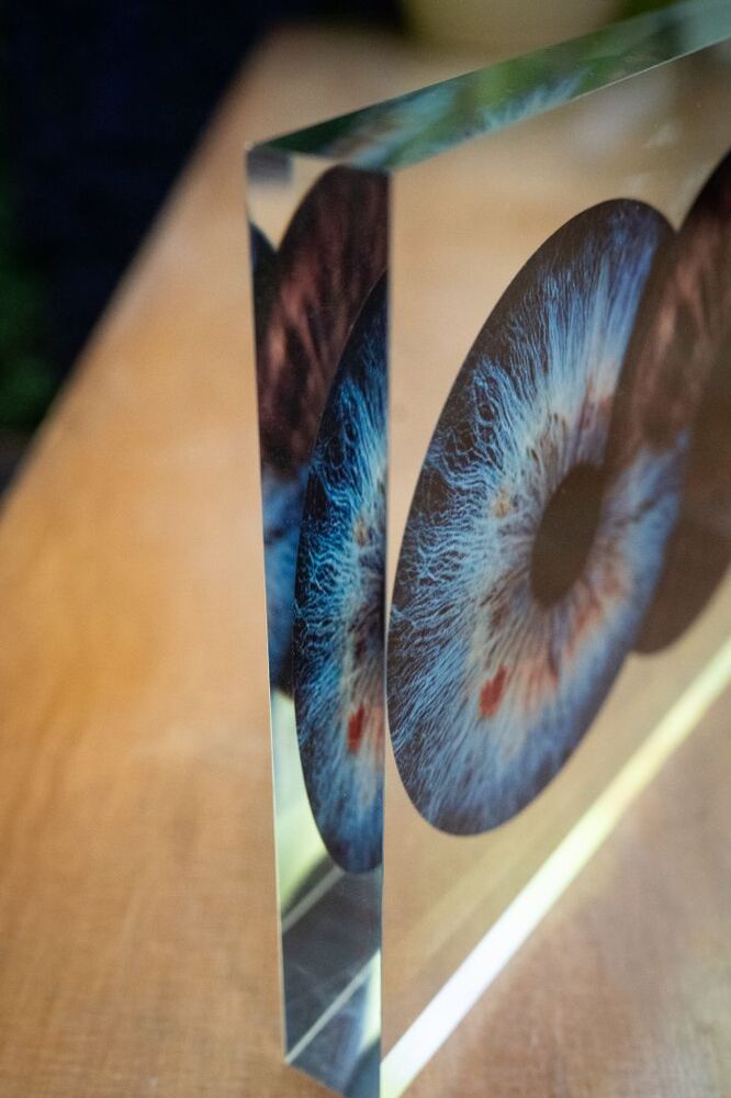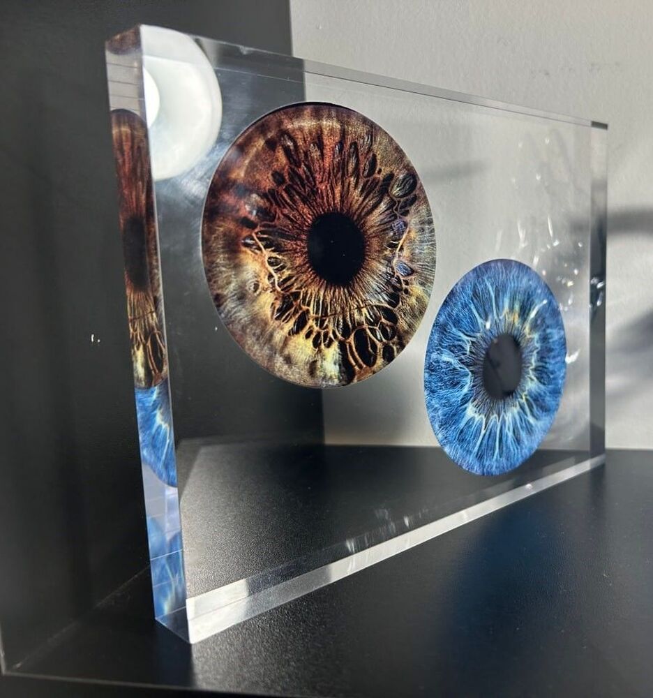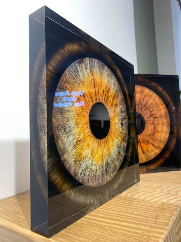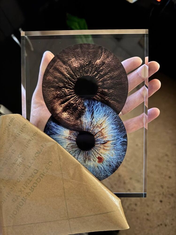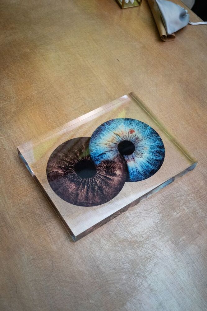 - Объемный акриловый блок — главный арт-объект с макросъемкой ваших радужек