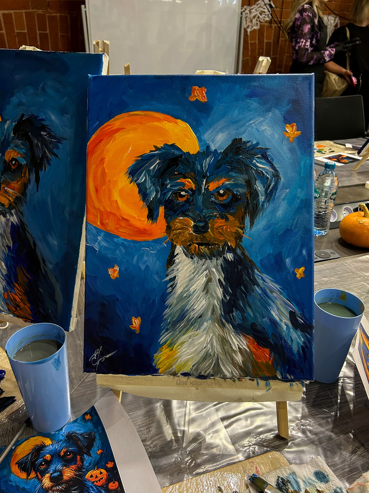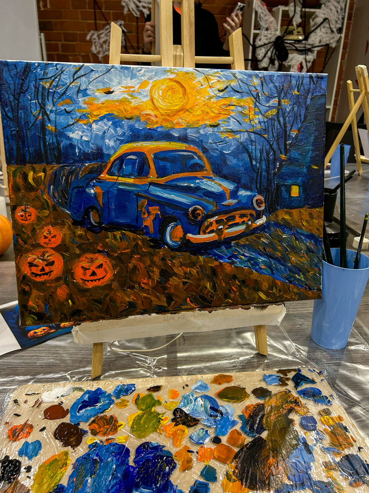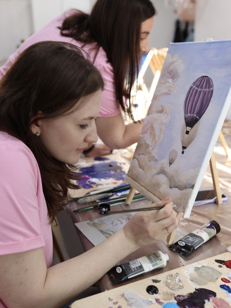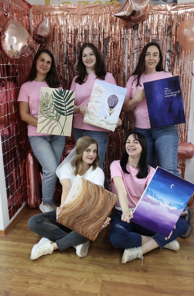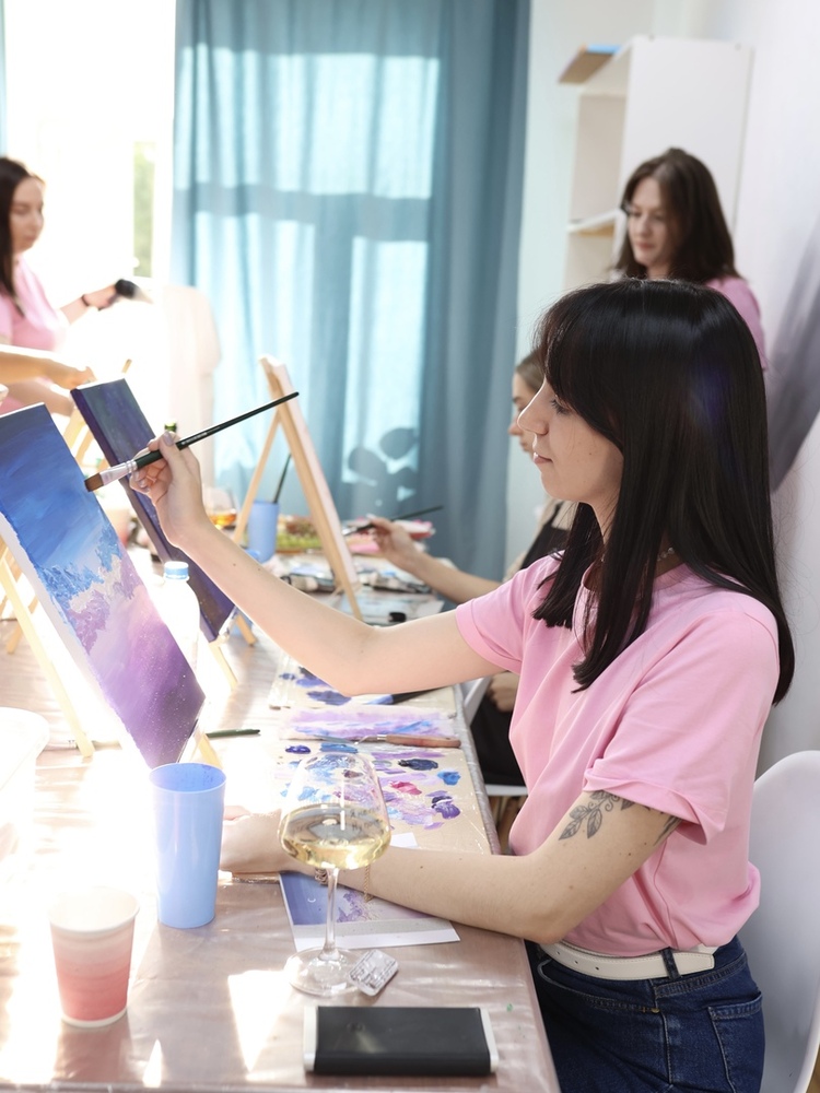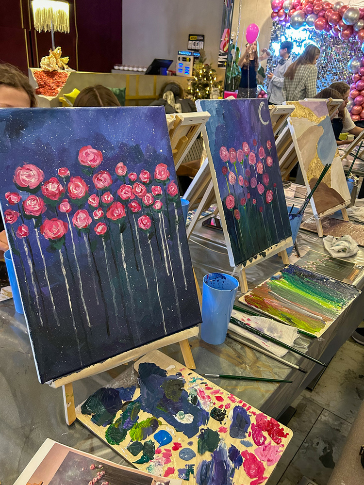 Каждый участник мастер-класса создает свою работу, в студии огромный выбор референсов (примеров того, что можно нарисовать), все гости пишут разные картины, воплощать свои идеи, конечно же, тоже можно!