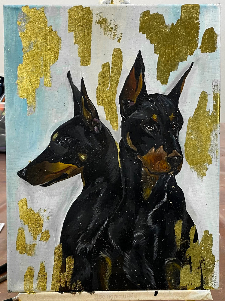 Интерьерная картина с золочением поталью - это художественное произведение, в котором живописный образ дополнен благородным металлическим сиянием. Суть техники в том, что на готовую акриловую живопись аккуратно наносится поталь - тончайшие листы имитации золота; после закрепления она придаёт работе глубину, объём и роскошный визуальный эффект.