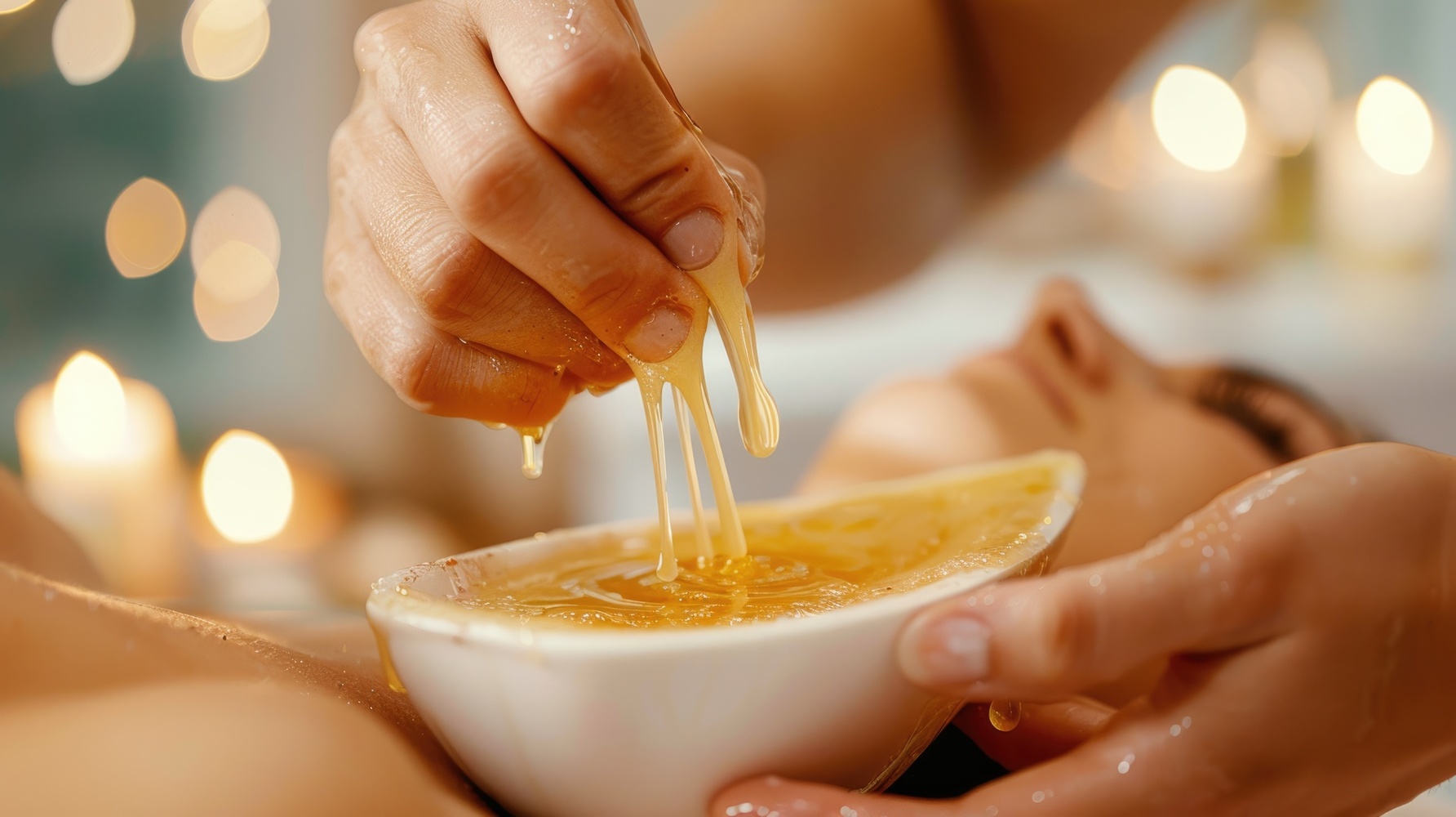 - Далее специалист наносит на тело подогретый до комфортной температуры мед. Втирающими движениями он продолжает делать массаж, чтобы сладкий состав хорошо впитался в кожу.