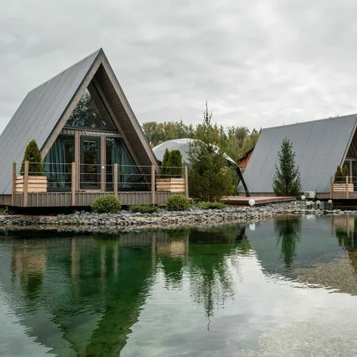 На территории комплекса множество семейных развлечений на любой вкус и на любое время года: утепленные круглогодичные беседки, семейные площадки для детей и взрослых, панорамный бассейн, русская баня, уютный пляж, в зимнее время каток на настоящем льду, так же у каждого домика есть свое пространство с летней мебелью и зоной мангала.