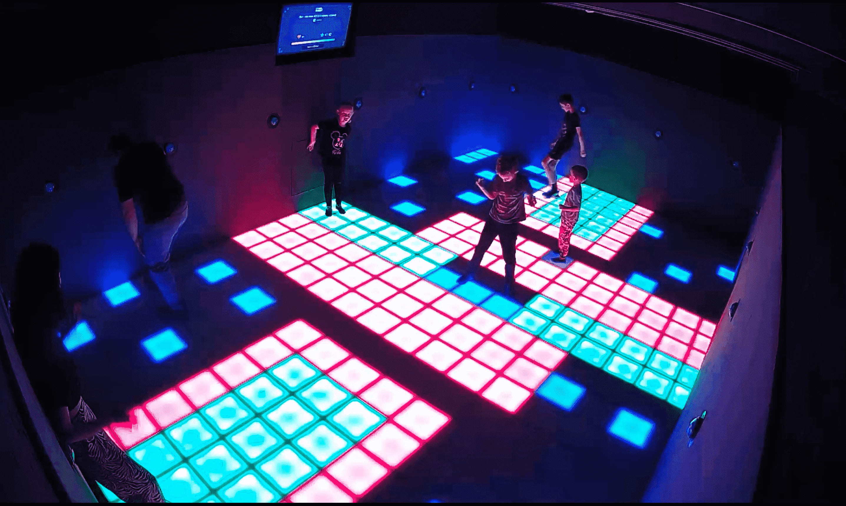 Подвижные игры в комнате со световым полом — развлечение для всех возрастов, отличный вариант для праздника или корпоратива.