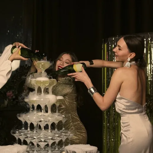 Вы можете выбрать, кто будет разливать напитки - наши бармены или кто-то из гостей. Если закатываете горку из бокалов на свадьбу, день рождения или девичник, то это будут делать виновники торжества. А если праздник общий, то можем провести жеребьевку, и любой желающий может выиграть возможность разлить пирамиду из бокалов и получить яркое видео.