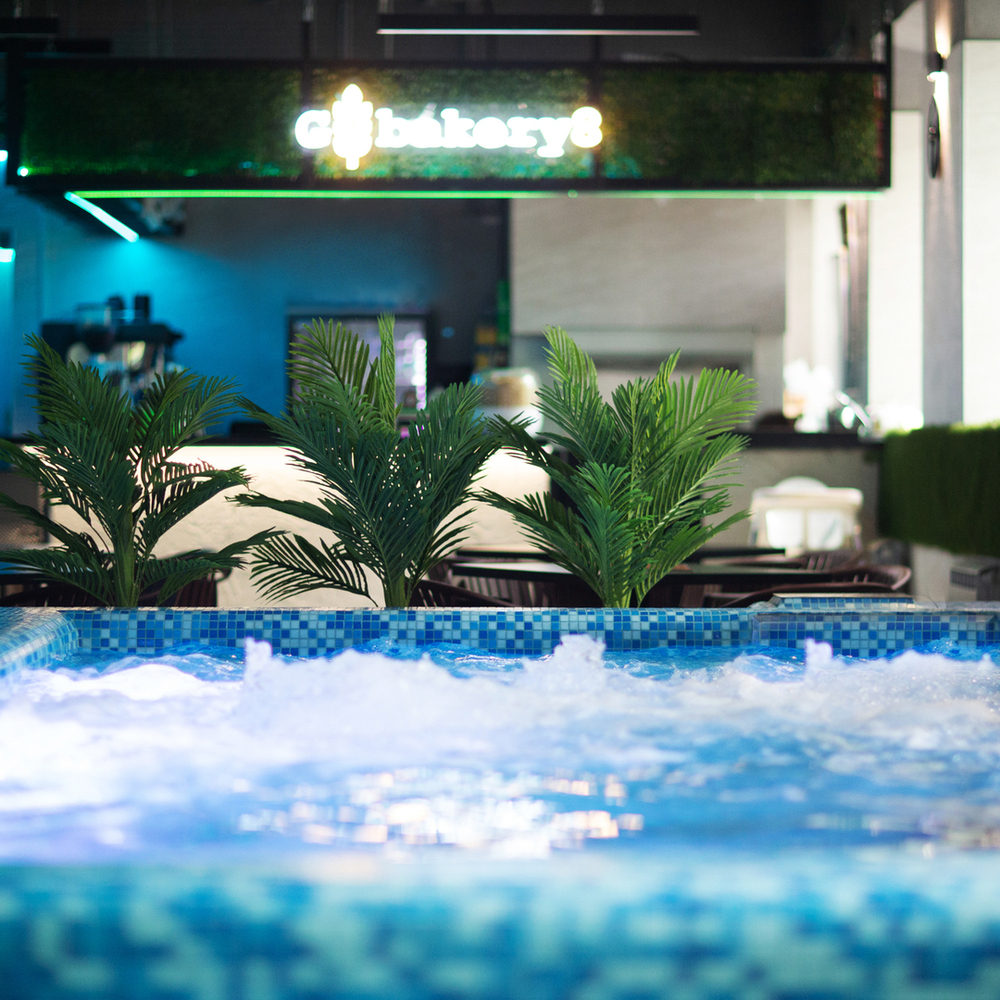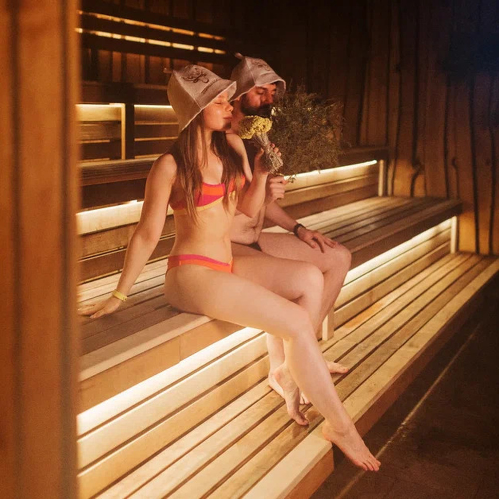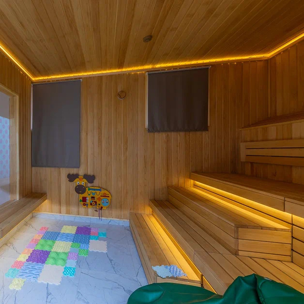 Просторная акватермальная зона с купелями разной температуры, разнообразные парные, включая шоу-парную с уникальной печью; два хаммама, соляная комната, ресторан с разнообразными блюдами, детским и сезонным меню, уютные зоны отдыха и отдельные развлечения для детей, включая специальную детскую парню с кинопроектором.