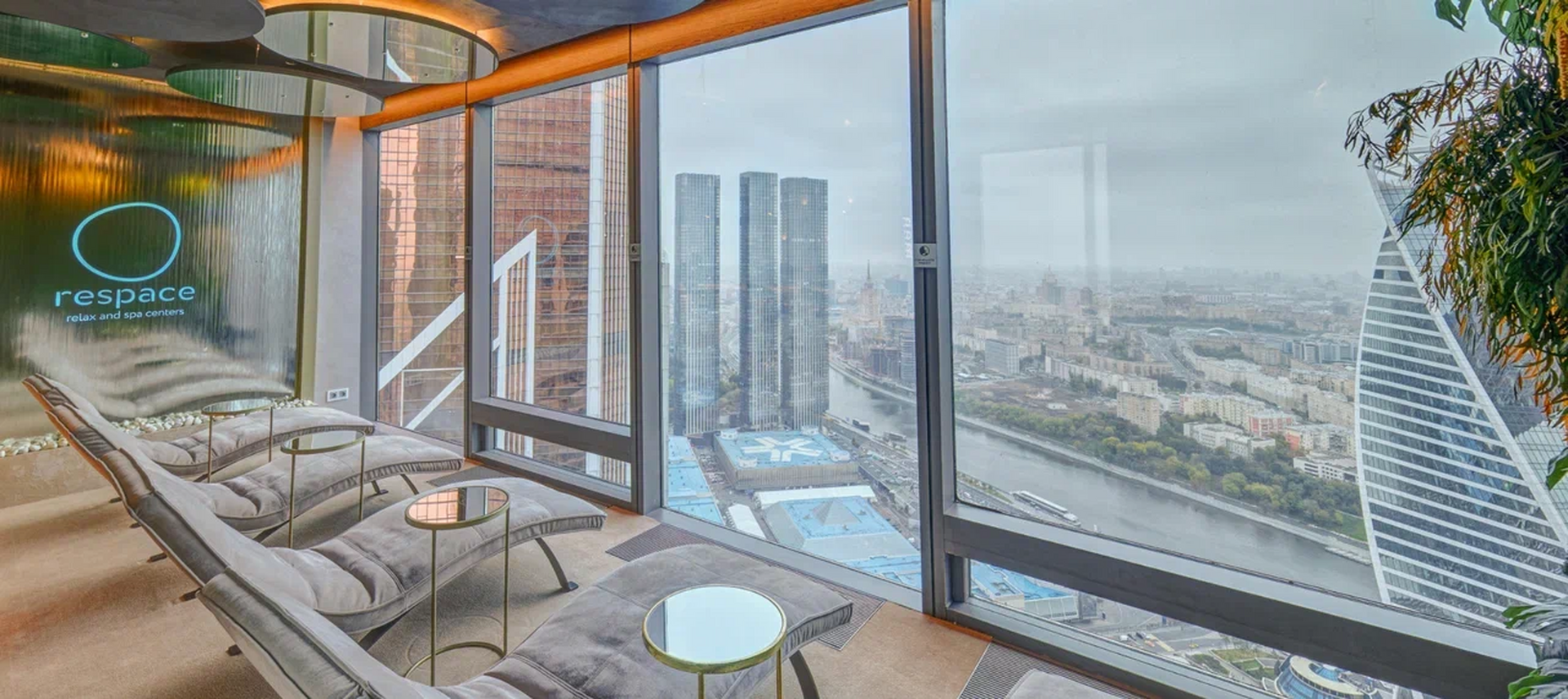 Спа-центр расположен на высоте птичьего полёта: на 54 этаже башни «Федерация» в Москва-Сити. Роскошные панорамные виды на Москву, высокопрофессиональные специалисты и косметика, разработанная ведущими мировыми компаниями, делают каждое посещение незабываемым. Вас ждёт разнообразие спа-программ на самый взыскательный вкус. Восполните баланс сил и энергии, окунитесь в атмосферу комфорта, релакса и наслаждения, расслабьтесь и отдохните от городской суеты в спа-центре Respace.